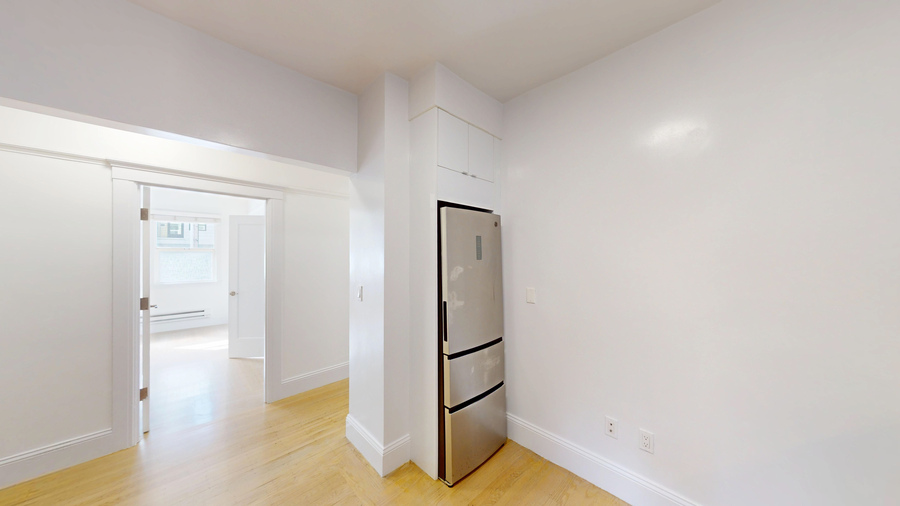 This is legally a 2-bedroom / 1-bath apartment with a living room, however it is currently configured and functions as a 3-bedroom because the living room is enclosed and used as a third private room.