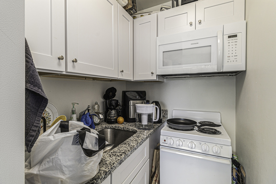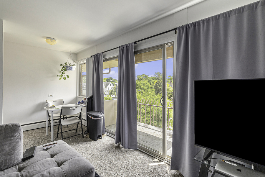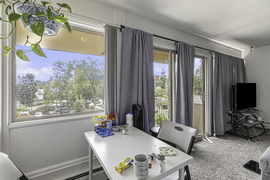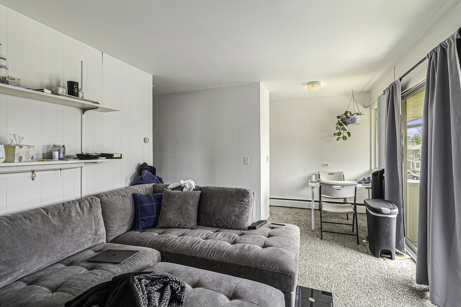 3rd floor, carpet. NO pets. Coin Laundry at 1321. We can offer a parking spot uncovered for $80/m and covered for $90/m.
