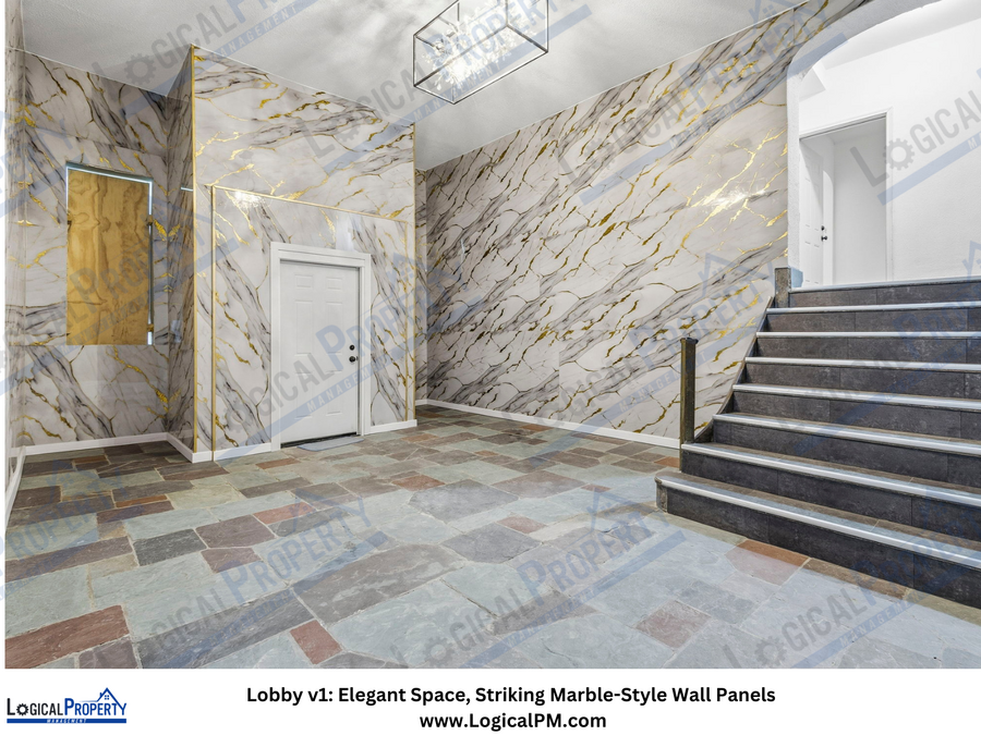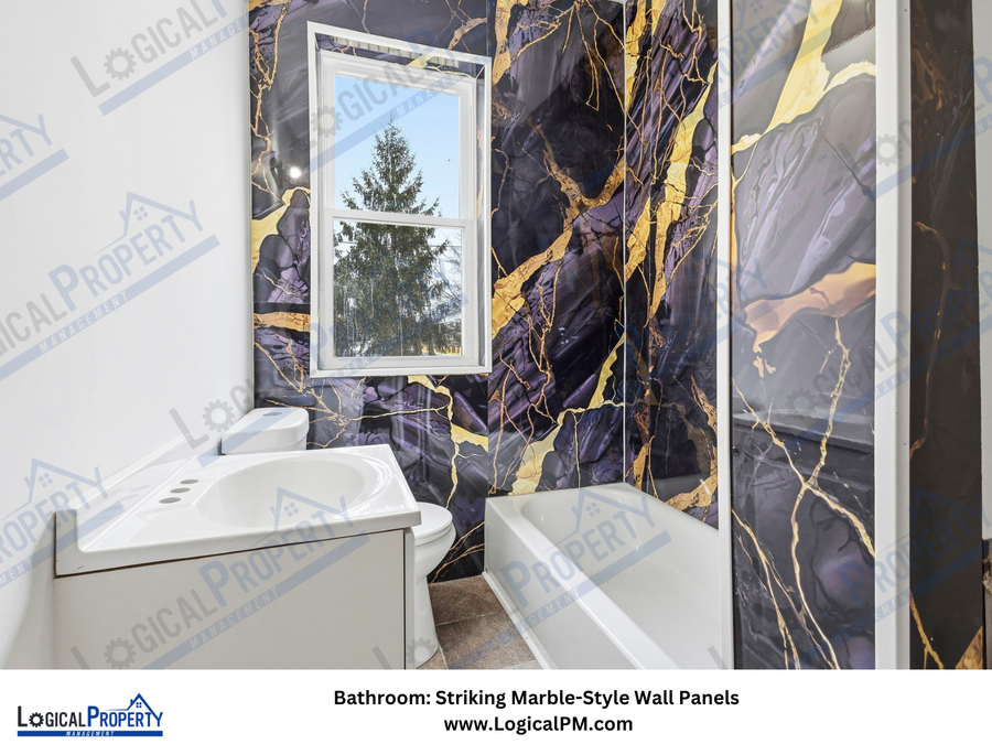 The fully updated bathroom adds another layer of sophistication with stylish tilework, modern fixtures, and a clean, contemporary design that feels fresh and refined.