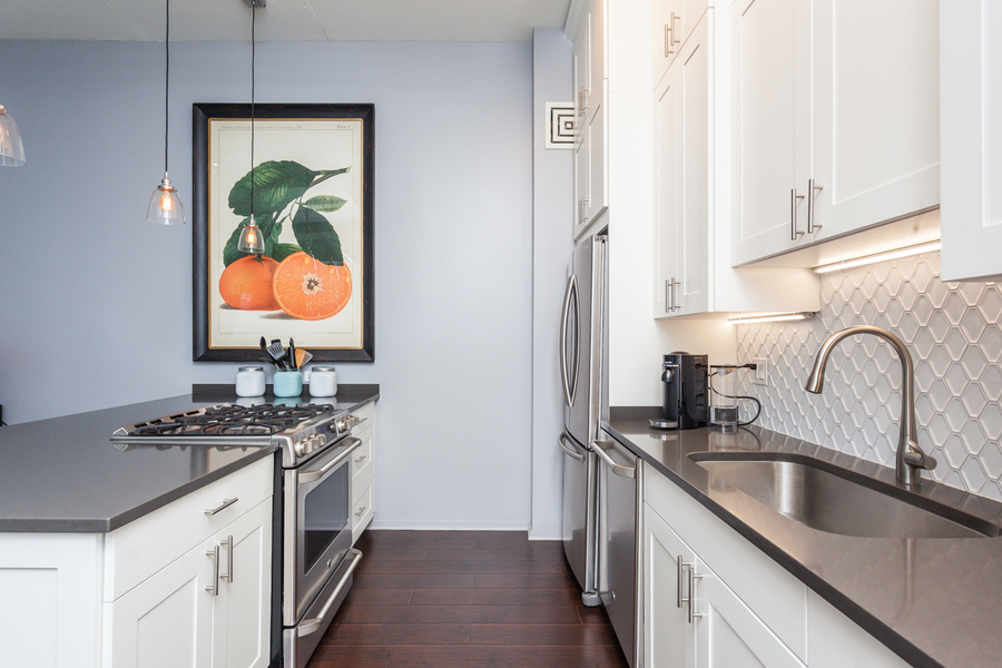 Come see this gorgeous 1-bedroom/1-bath open-concept loft unit located in the West Loop area! This large condo has hardwood floors throughout, a renovated kitchen with lots of cabinet space, SS appliances with a gas range oven, dishwasher, and a large breakfast bar with grey quartz countertops. The bedroom can easily accommodate a king sized bed as needed, along with some space for a home office or dresser, and a sizeable walk-in closet. Bathroom is accessible from both the bedroom and living space and is beautifully renovated with a standing shower, modern finishes, and recessed lighting. Unit comes equipped with an in-unit washer and dryer and has central heating and air. Storage locker, cable, and internet are included in the rent, and tenant only pays for gas and electric. Parking options are available for rent in the building from other owners/tenants. 1 pet is allowed, cat or dog, with additional fee. The full-service building has 24-hour door staff, a fitness room, a huge common sun terrace, and a bike room. Location is ideal for commuters and if you love good food with tons of restaurants and access to multiple shopping areas. Photos taken from previous tenant.