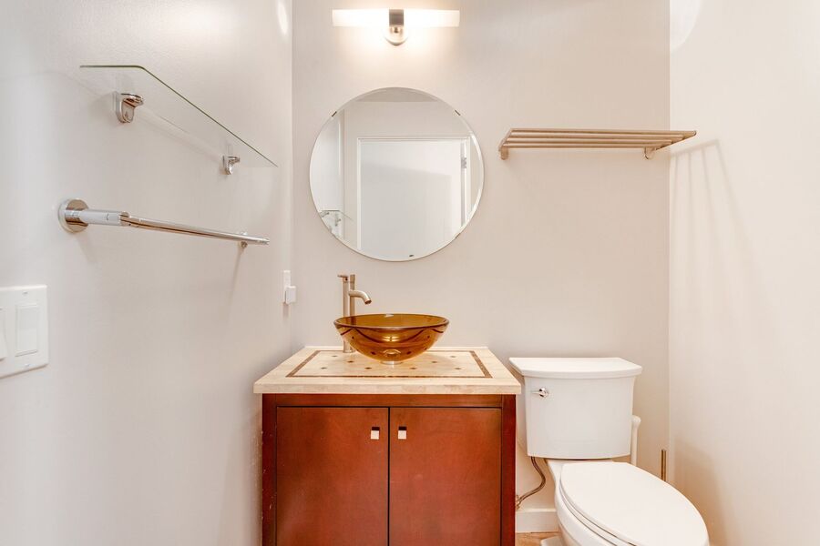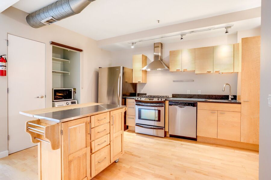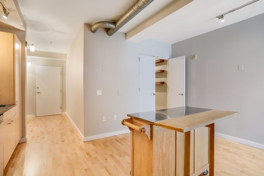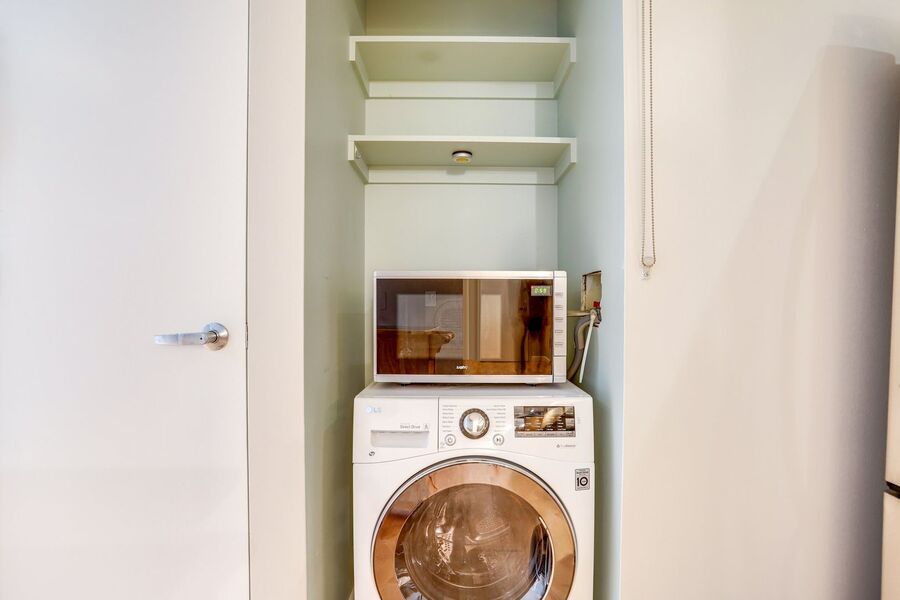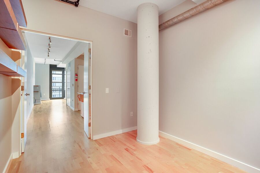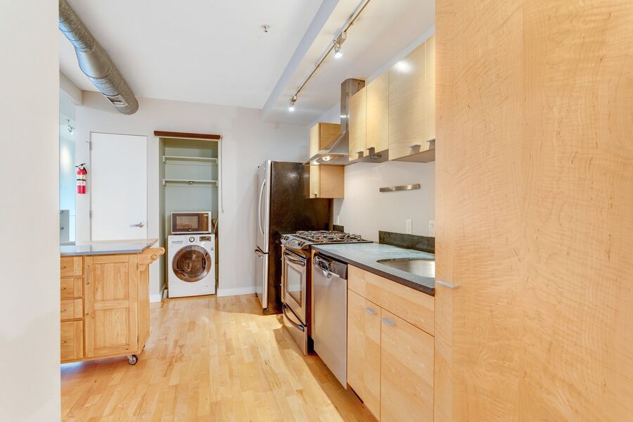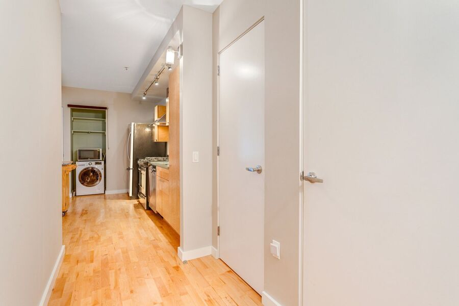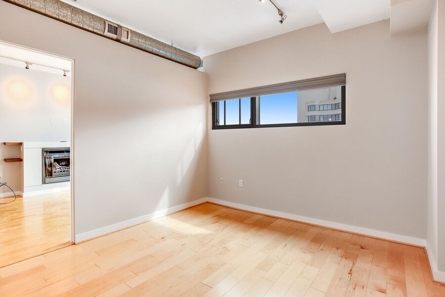 You'll also find a large den, it's a perfect space to put an office, a library, spillover storage, or maybe a cozy nook for your TV! The half bathroom off of the foyer adds convenience. In the kitchen, you will find your next in-unit washer/dryer and closet space. Don’t miss the private balcony with expansive city views! The building has a package locker.