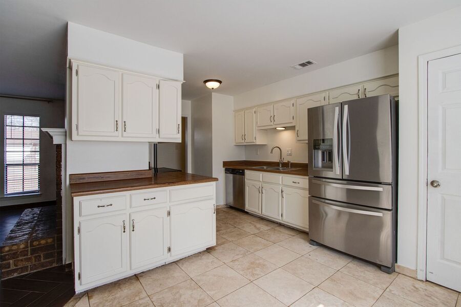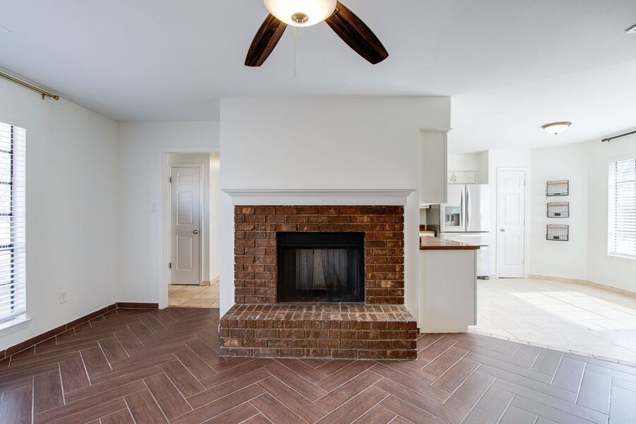 This beautifully updated 3 bedroom, 2 bathroom single-family home in Bartlett, TN offers modern finishes and a functional layout. The living room features a fireplace, wood-style flooring, and large windows that bring in great natural light. It opens into the eat-in kitchen, which includes stainless steel appliances, a large French-door refrigerator with multiple freezer drawers, and plenty of space for dining.