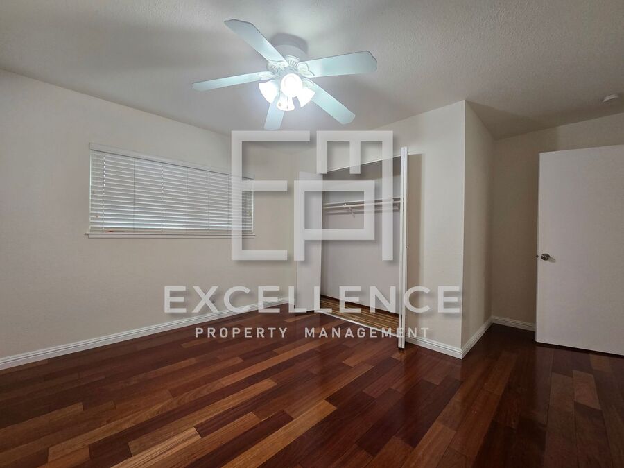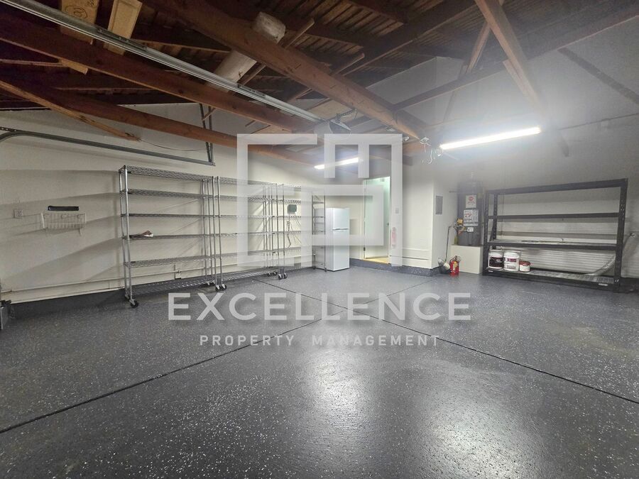 Outside, enjoy a private yard with a covered patio and a storage shed. The attached 2-car garage includes built-in storage and an extra refrigerator as a courtesy item. Garbage is paid, and gardener service is included.