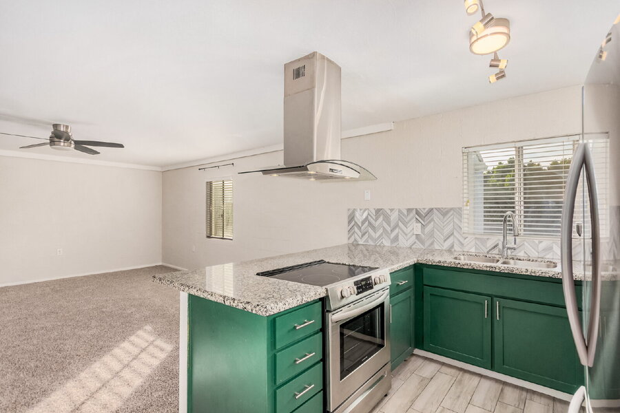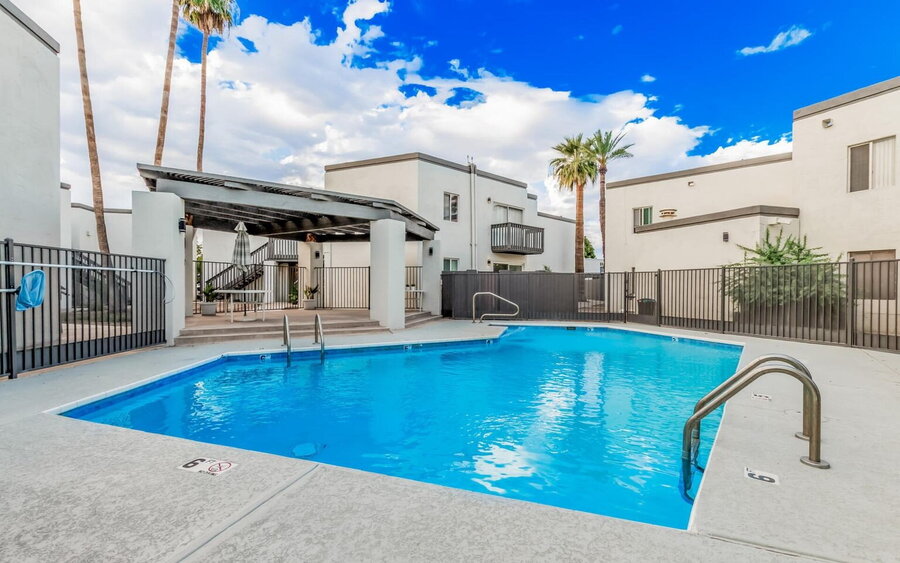 Updated2 bedroom 2 bath condo located in the highly sought after Madison School District. Great room is spacious and open to the kitchen. The kitchen features granite countertops and stainless steel appliances. Kitchen and both bathrooms have been renovated. Modern finishes including two toned grey paint, updated fixtures, and ceiling fans. Community amenities include two sparkling pools, clubhouse, and shared laundry facilities. Located in the heart of Phoenix walking distance from shops, hip dining and all Midtown has to offer. Utilities billed to tenant at $200/month.Assigned Covered Parking