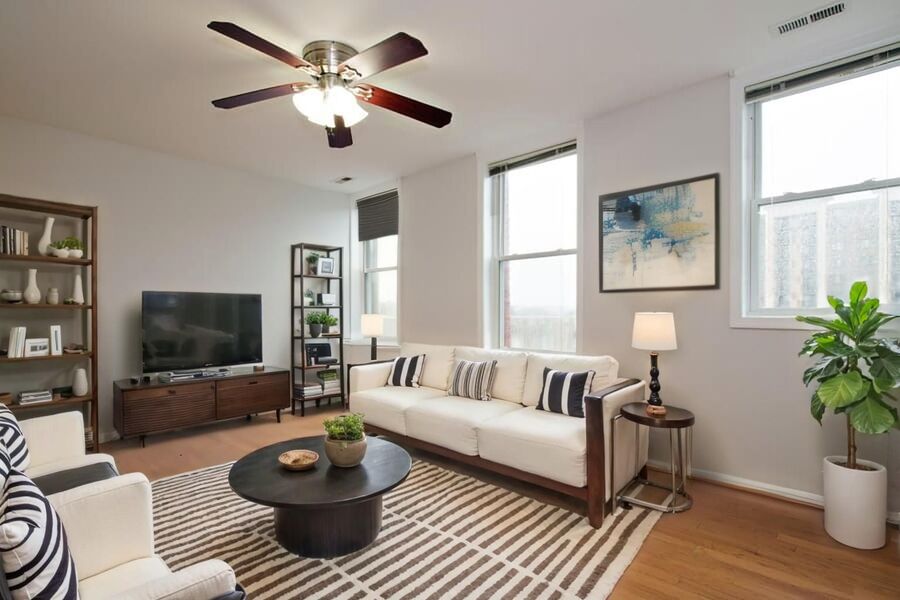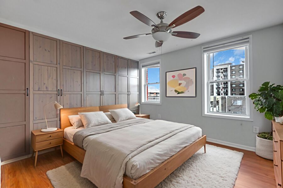 Beautiful Columbia Heights condo featuring tall ceilings, bright open layout, and ample closet space.