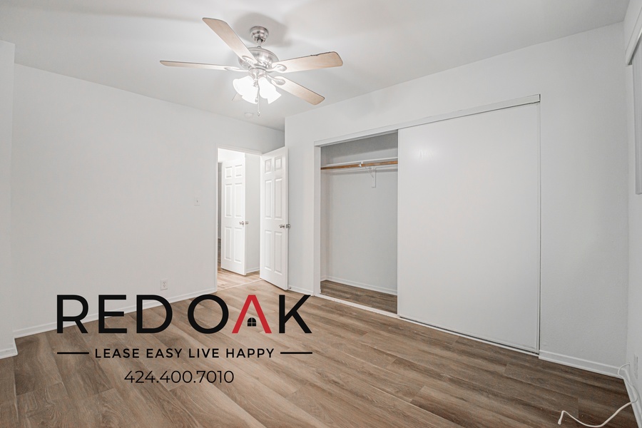 ~ Peaceful Retreat: Spacious bedroom with an ample closet and ceiling fan.