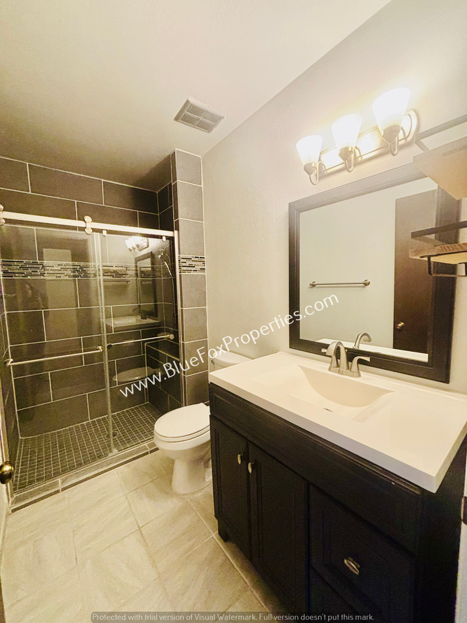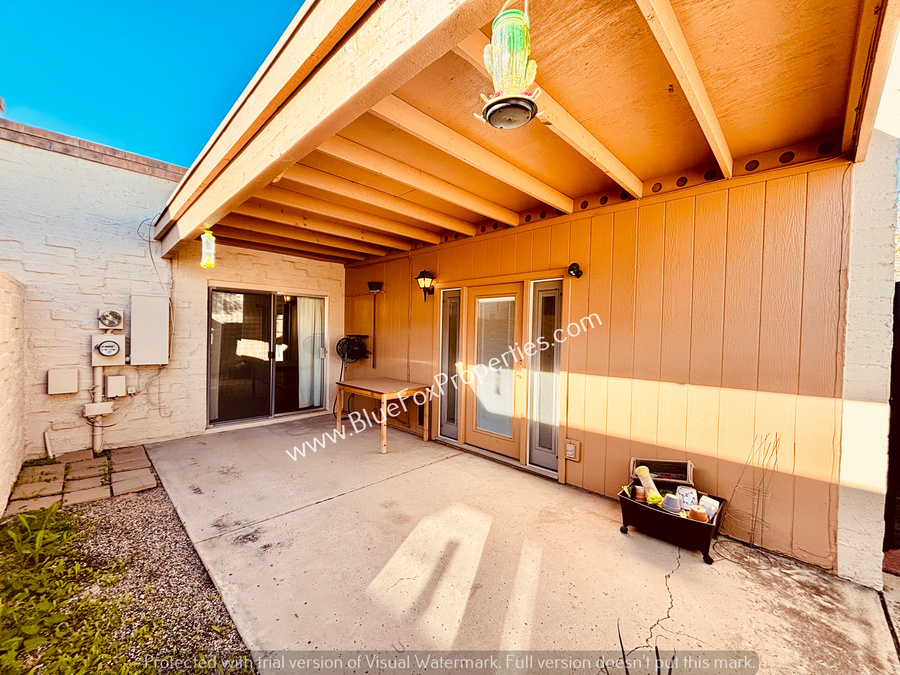 The primary bedroom offers a generously sized walk-in closet, private backyard access, and an en-suite bathroom with a glass-enclosed shower. Enjoy the cozy backyard with a covered patio, ideal for relaxing or hosting gatherings.