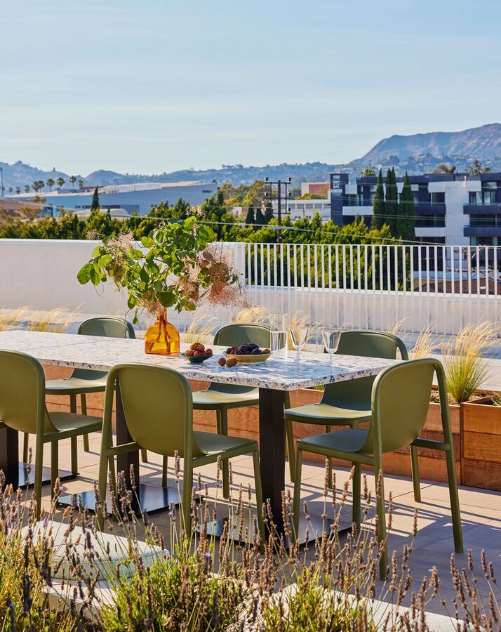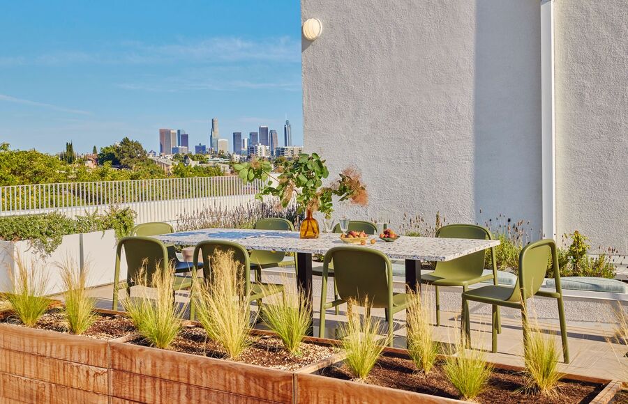 Life at Rivo offers the privacy of luxurious one- and two-bedroom apartments, access to unparalleled views of DTLA, the Hollywood Sign, and Griffith Observatory from the Rooftop Fire Pit Lounge, Rooftop BBQ, and Rooftop Lounge, and all modern-day conveniences of apartment living. Each turnkey unit offers an abundance of natural light, private outdoor balconies, and a natural bleached oak finish palette with top of the line appliances, in unit washer dryers, and ensuite bathrooms.