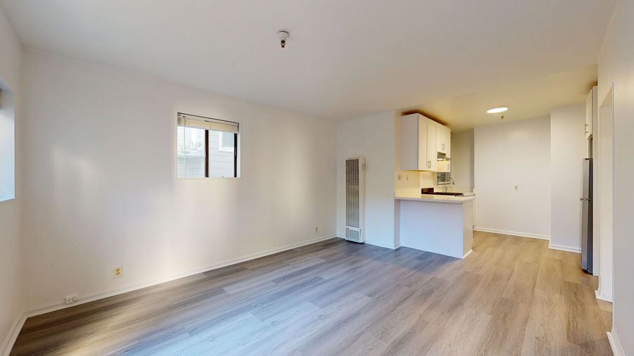 This inviting home features a bright, spacious living area with modern finishes and stylish flooring throughout. The kitchen has been tastefully updated with contemporary cabinetry and appliances, ideal for everyday cooking or entertaining. The bedroom offers a peaceful retreat with ample closet space, while the refreshed bathroom adds to the home’s modern appeal.