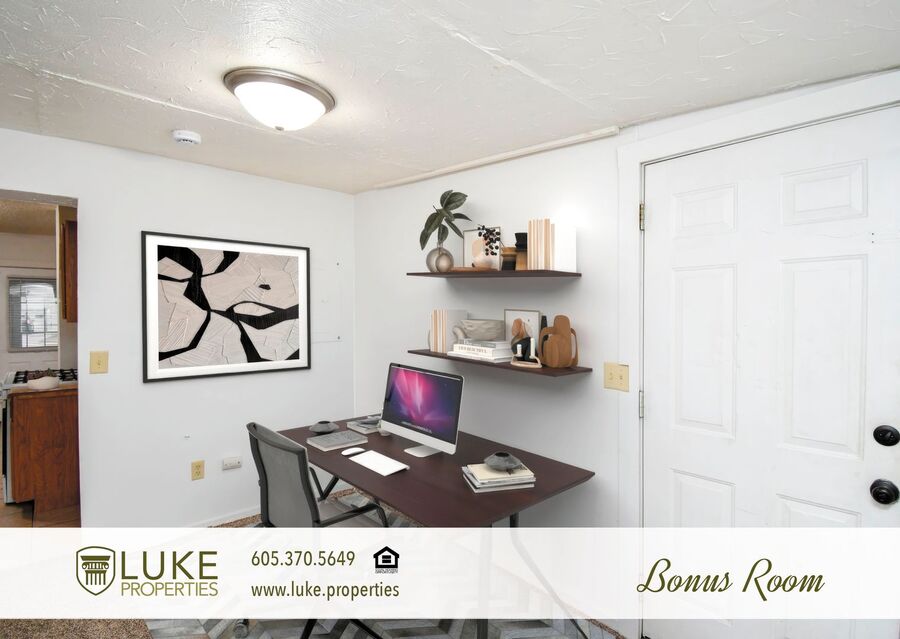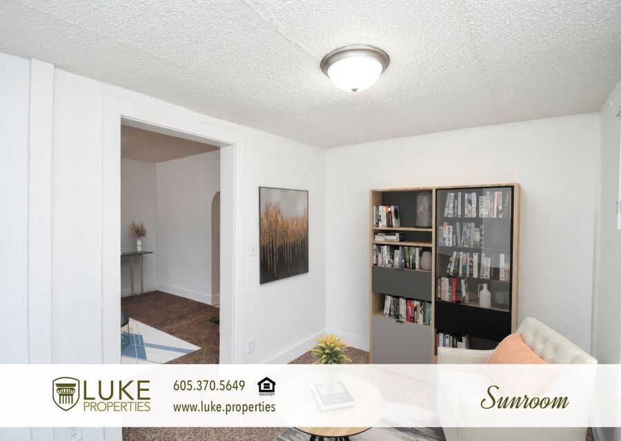 Discover this well-appointed 2-bedroom, 1-bath home in Sioux Falls. The layout includes a living room, a den, and a cozy porch, providing flexible indoor space, plus an eat-in kitchen equipped with a refrigerator and a stove/oven, and hardwood cabinets.