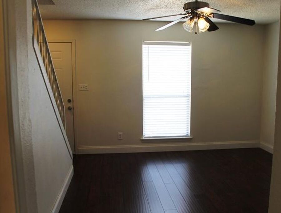 2 story townhome - downstairs currently being updated. New pictures to come. Private enclosed back patio, one covered reserved parking spot and one open spot. Private storage closet in the back also. 2 bedrooms upstairs with ceiling fan in both bedrooms. Ceiling fan in downstairs living area also. Laminate floors in all living areas, tile flooring in both bathrooms. Light bright kitchen. All kitchen appliances, full size washer and dryer hookup in laundry area. Water included as well as lawn maintenance. Cute and cozy home. This one won't last long. $50 application fee 18 years and older. Leasing Guidelines in Transaction Desk. Come take a look at your new home. MUST SEE!!