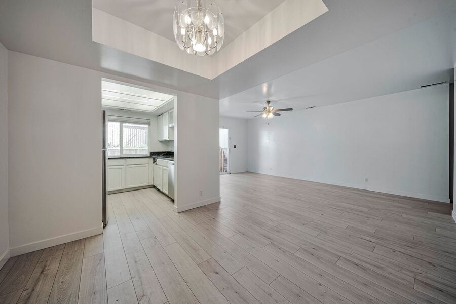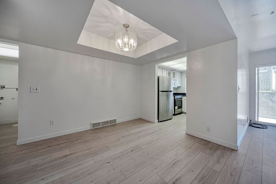 There is a patio and new stainless steel appliances. The unit has a brand-new washer and dryer.