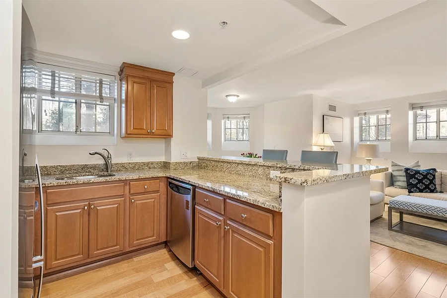 Discover this exceptional corner 1-bedroom residence at Longwood Towers, with two exposures, offering a rare in-unit Miele washer/dryer. This well-designed, partially below-grade unit features hardwood floors, stainless steel appliances, granite countertops, and a renovated bathroom with heated floors. Enjoy the convenience of central air conditioning and a king-sized bedroom. Building amenities include a 24-hour concierge, fitness center, and community room. Valet garage parking is available for rent. The building is situated in a picturesque setting, yet is located just outside the Longwood Medical Area close to Coolidge Corner and Brookline Village. Steps from the Longwood T stop that provides easy access to Back Bay, Downtown, Somerville, and Medford, this gorgeous and meticulously maintained building offers unparalleled convenience and luxury.