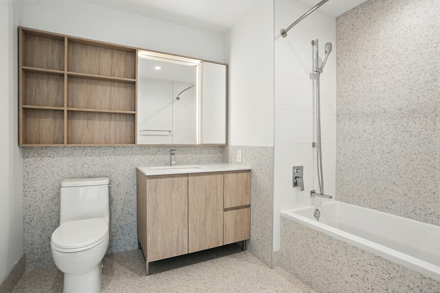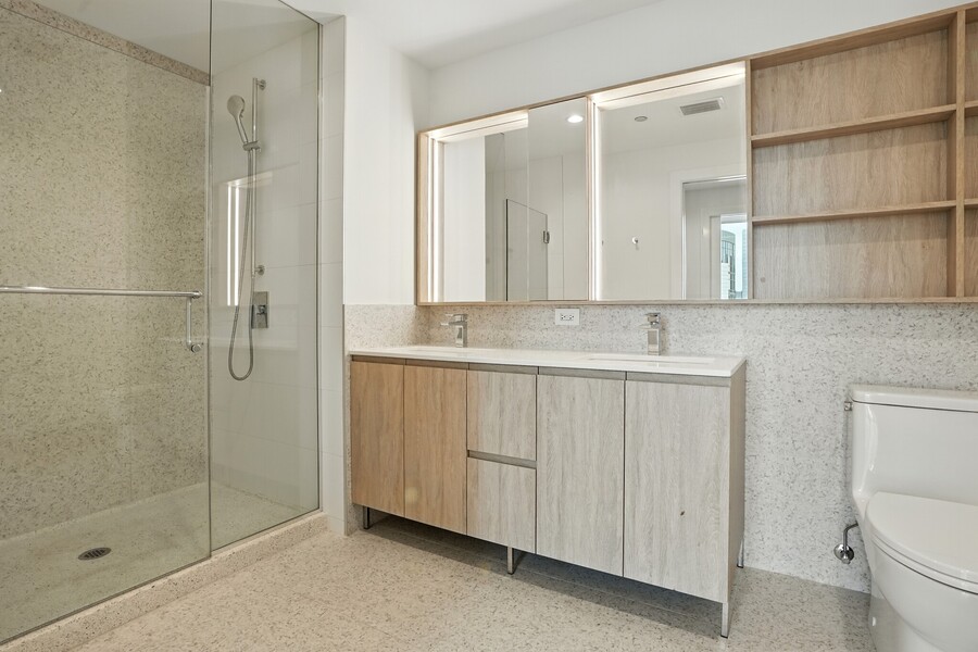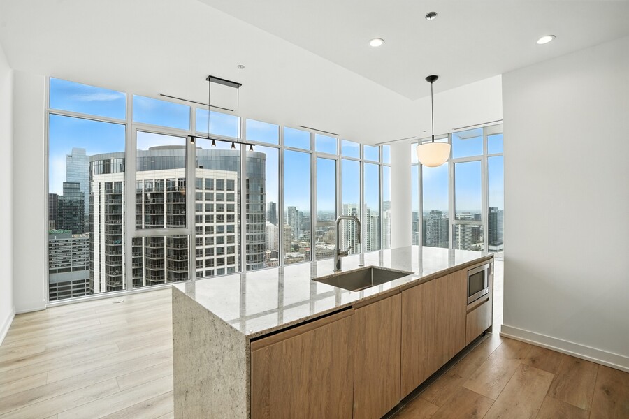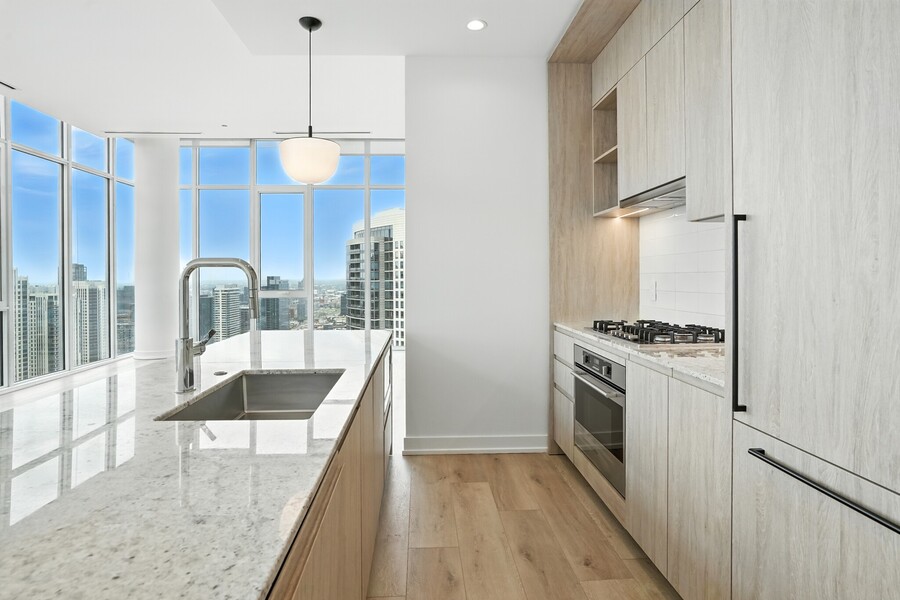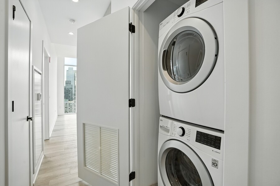Newly constructed in 2021, this luxury high-rise is River North living at its finest. At home, enjoy an exquisitely designed apartment with remarkable indoor and outdoor amenity spaces. Step outside, and you ll find dozens of amazing restaurants, cool bars, and a beautiful riverside walkway. It s no wonder that so many folks love living in this popular downtown neighborhood. Light and warm hued luxury finishes will welcome you in these chic apartments. Floor-to-ceiling windows fill the rooms with sunlight and wide-plank wood flooring flows seamlessly throughout living spaces and bedrooms. In-unit conveniences include spacious custom closets, full-sized washer and dryer, and self-controlled heating and cooling. Kitchens are designed to entertain with beautiful Italian cabinetry, granite countertops, and premium quality appliances. Home cooks and bakers will love the stainless-steel gas range, with the slide-out hood fan and convection oven. Bathrooms have spa-like finishes with