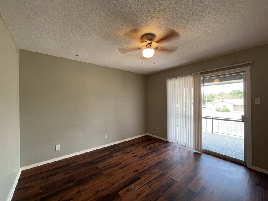 Step inside to find durable vinyl flooring throughout and a bright, open layout. The kitchen is equipped with solid countertops, a breakfast bar, electric stove, refrigerator and a spacious pantry ideal for anyone who enjoys cooking or entertaining. The living area flows easily out to a private balcony off the primary bedroom, creating a great spot to relax.