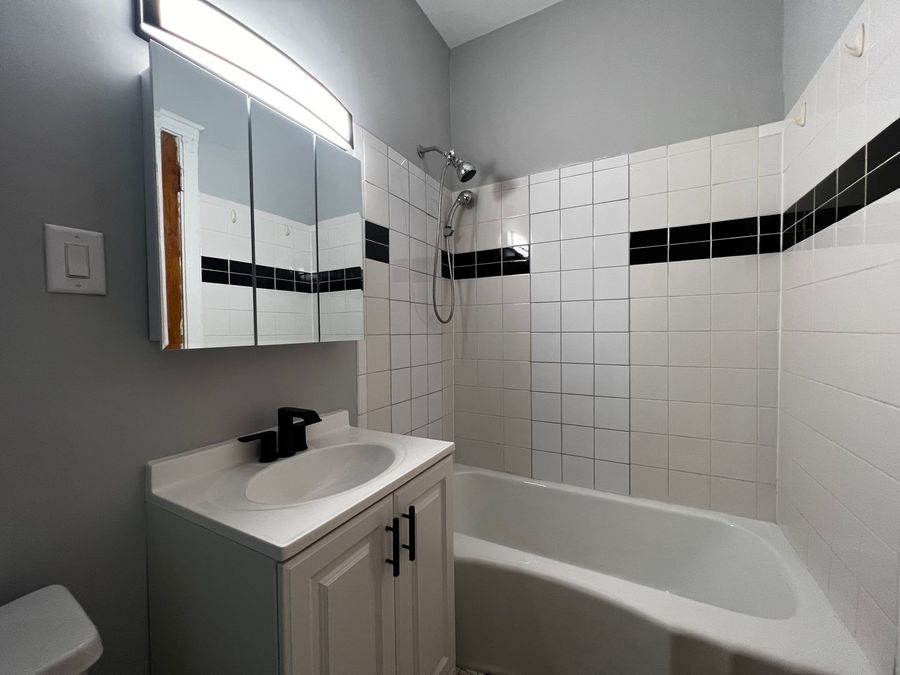 • Updated bathroom has a new vanity, medicine cabinet and lighting.