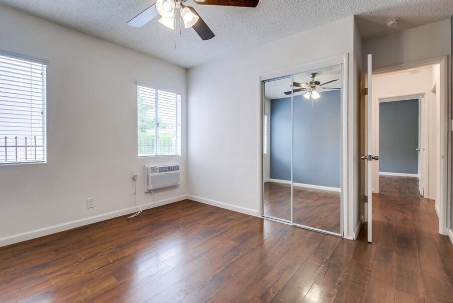 Discover a well-appointed 2-bedroom, 1-bath apartment in Los Angeles featuring hardwood floors, granite kitchen counters, and hardwood cabinets. The kitchen includes stainless steel appliances, a refrigerator, stove/oven, dishwasher, and microwave. Comfort is enhanced with air conditioning and ceiling fans. On-site laundry and gated parking provide convenience, while gated property access and closed-circuit video monitoring add an extra layer of security. The community accepts pets and offers online payments for easy rent management.