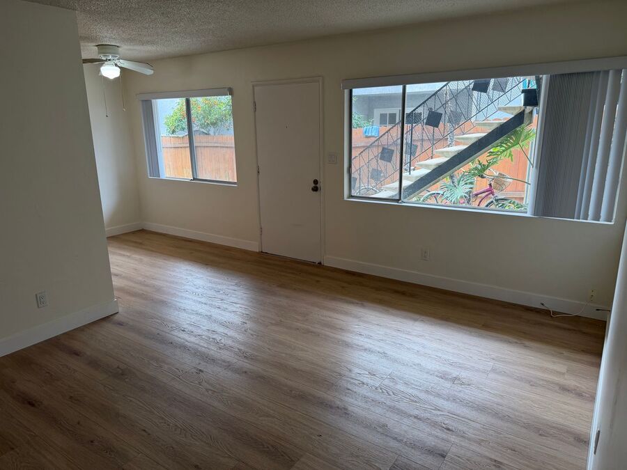 Located in a 6-unit complex just one block from Sail Bay and 6 blocks to the beach! This spacious 2BR/2BA ground-floor unit features a gas stove and vinyl plank flooring throughout with newly-carpeted bedrooms. Includes a tandem two-car parking lane and a community laundry room onsite.
