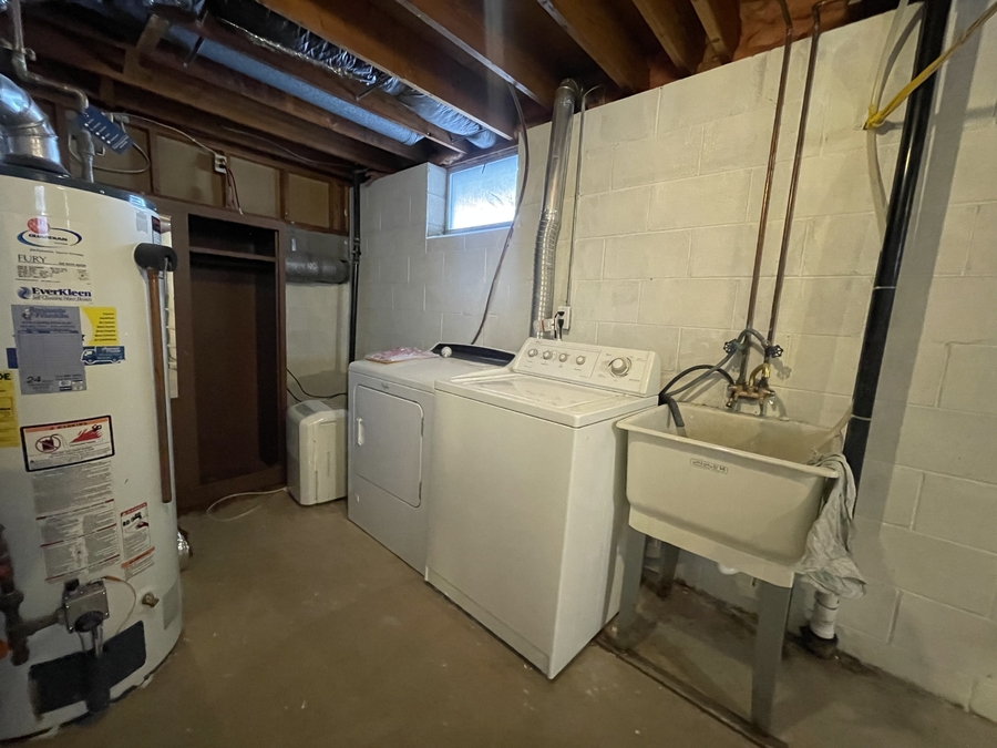 The basement has a large family room and laundry room.