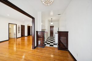 The kitchen is a chef's dream, featuring stunning quartz countertops, modern kitchen lighting, and stainless steel appliances. There's ample pantry space, making it perfect for those who love to cook and entertain.