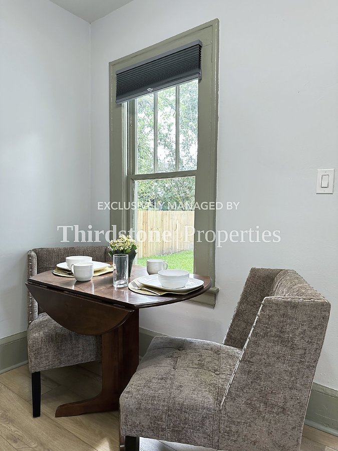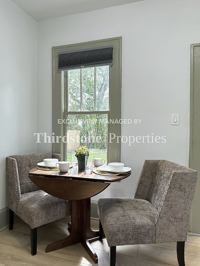 Schedule your appointment to view this charming 2 bedroom, 1 bathroom home located in the historic Springfield neighborhood. This beautifully maintained home features a modern kitchen with butcher block countertops, stainless steel appliances including an over-the-range microwave, dishwasher, and ample cabinetry for storage. The bathroom showcases timeless subway tile surrounding the bathtub along with stylish black hardware. Enjoy durable vinyl plank flooring throughout, ceiling fans for added comfort, and window blinds or curtains for added privacy in many rooms. The fireplace offers a unique aesthetic, however, it is inoperable. Washer and dryer hookups are conveniently located at the back of the home, and a storage shed is available in the backyard. The home is currently furnished; however, the owner is happy to remove the furniture if the approved resident prefers an unfurnished space. The residents are responsible for all utilities and lawn care. Pets are welcome, breed and weight restrictions may apply. Application fee $55 per person 18 and over. Lease Term: 12 months.