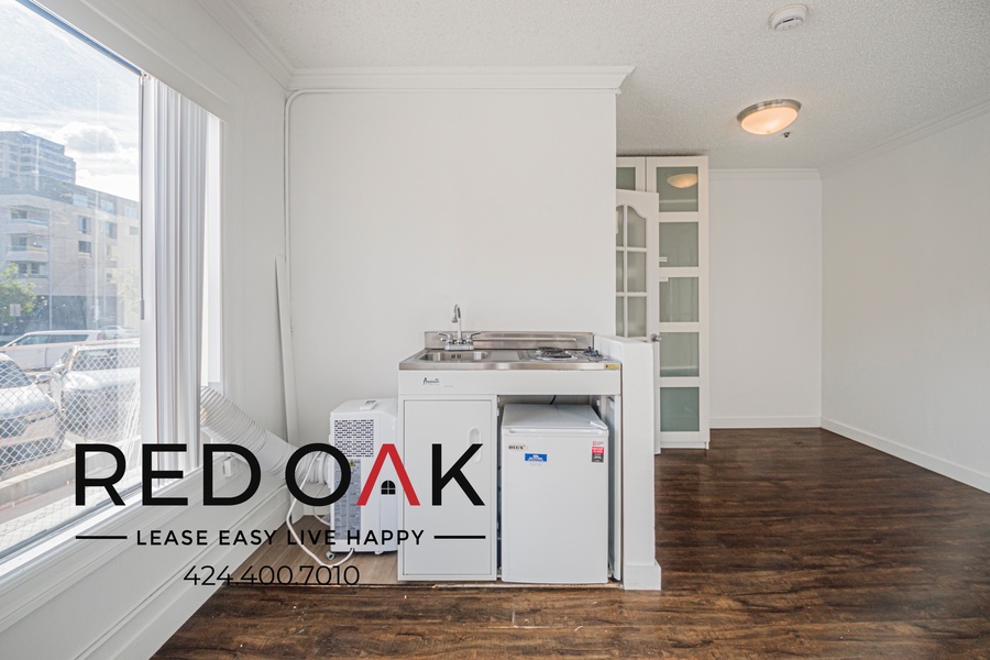 Cheerful Bachelor with Large Windows, Essential Appliances, Hardwood Style Floors, On-Site Laundry, and Included Parking ~ In Glendale!