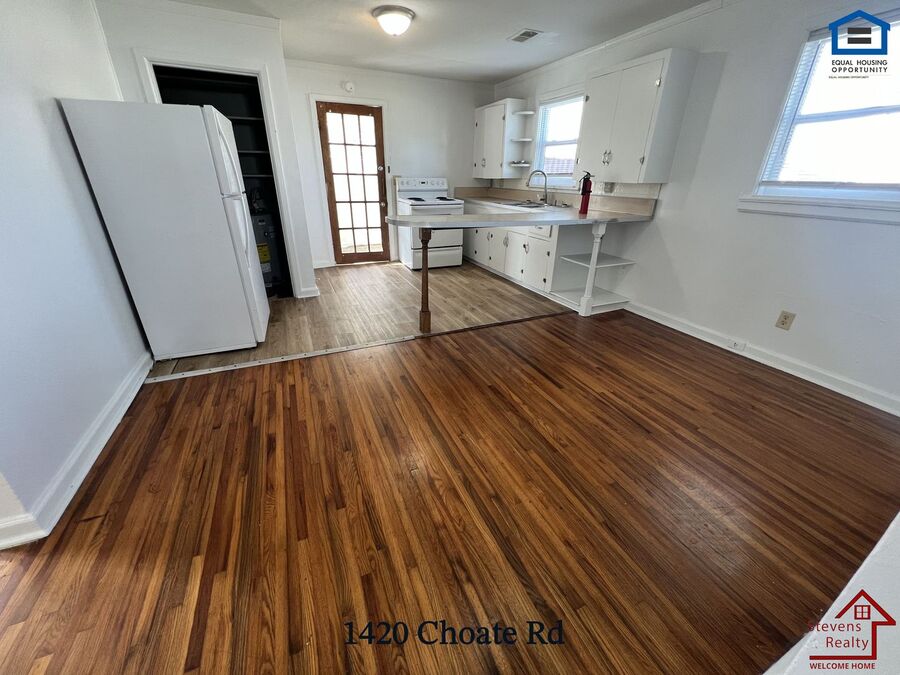 Find solace in this lovely 2-bedroom family home with an interior that boasts a bright and spacious living room, adorned with beautiful hardwood floors that add warmth and character. The well-equipped kitchen caters to your culinary needs, with a dishwasher, refrigerator, stove, and sleek white shaker cabinets offering plenty of counter space to serve your family. With a full bath, washer and dryer hookup, and central heat and air, this home ensures convenience and comfort year-round. With a pet-friendly policy of up to 90 lbs and a fenced yard, this home is perfect for both you and your beloved pet. Additionally, a back porch and deck offer serene outdoor spaces, and a garage provides secure parking.