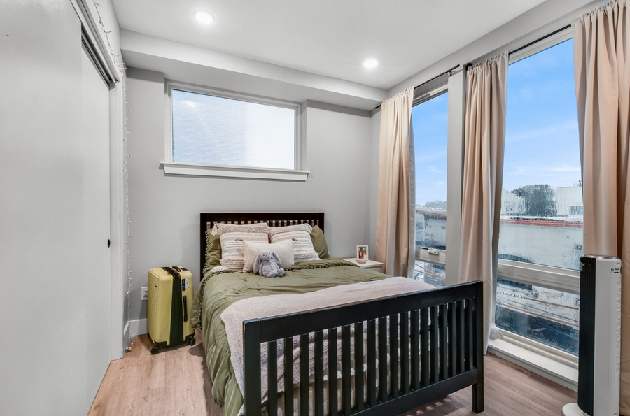 Unit #301 is a 2 bedroom, 1 bathroom third-floor rental apartment offering an open floor plan, recessed lighting, stainless steel appliances, and central air.
