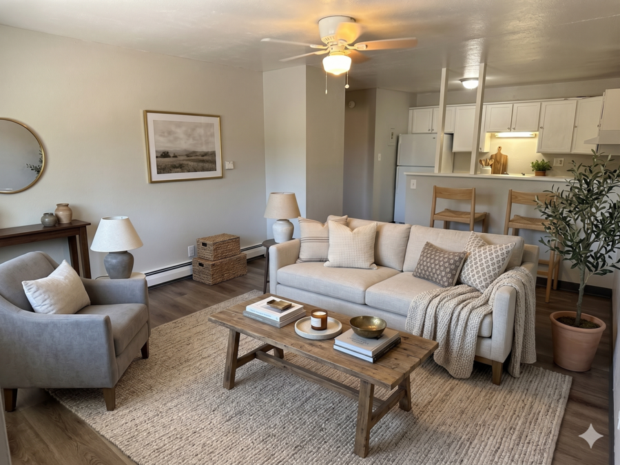 Welcome to 1726 Clemson Dr #304, a charming 1-bedroom, 1-bath apartment featuring dark wood-style flooring, a spacious open layout, and a kitchen with modern cabinetry and plenty of counter space. Large windows fill the home with natural light, creating a warm and inviting atmosphere. Conveniently located near shopping, dining, parks, and major roadways, this home offers both comfort and accessibility in the heart of Colorado Springs.