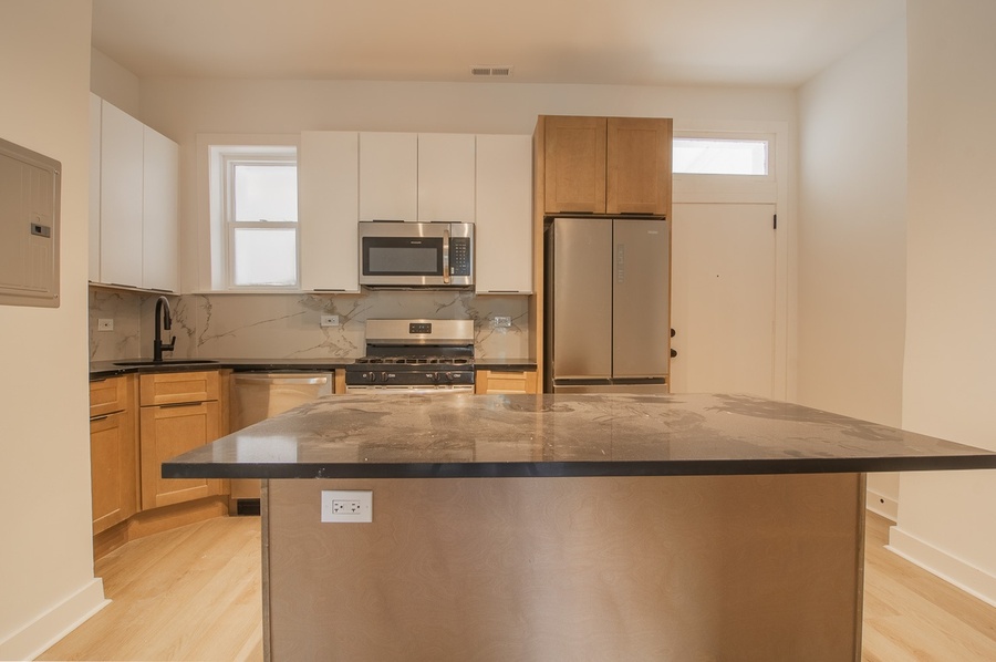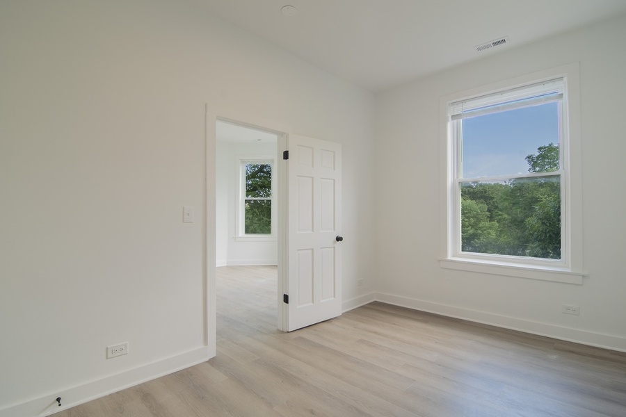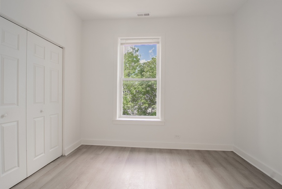 Situated on a prime corner lot, this beautifully renovated top-floor apartment offers expansive views of the park and an abundance of natural light. The spacious layout features three bedrooms and two modern bathrooms, complemented by hardwood floors throughout. Enjoy a sleek kitchen with stainless steel appliances, in-unit laundry, central heat and air, and contemporary finishes. Pet-friendly and perfectly located directly across from the park-this is elevated rental living at its finest.