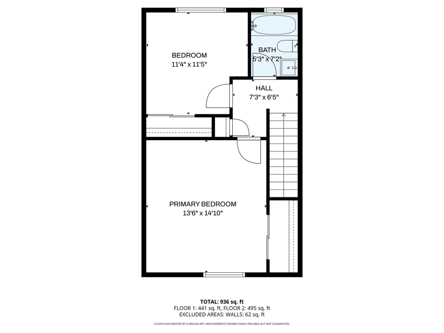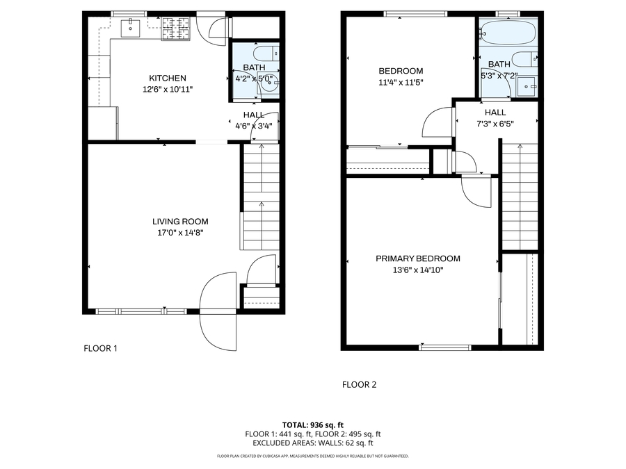 2 Bedrooms | 1.5 Bathrooms (bathroom on each level)
