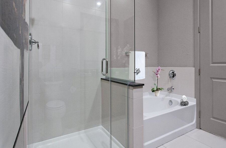 Frameless Glass Walk-in Showers with Separate Soaking Tubs