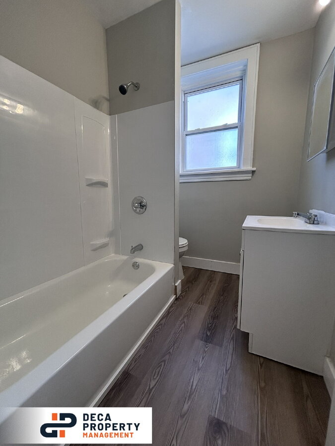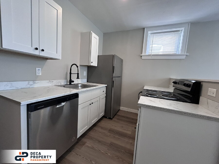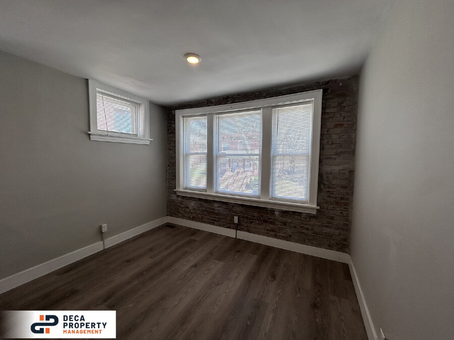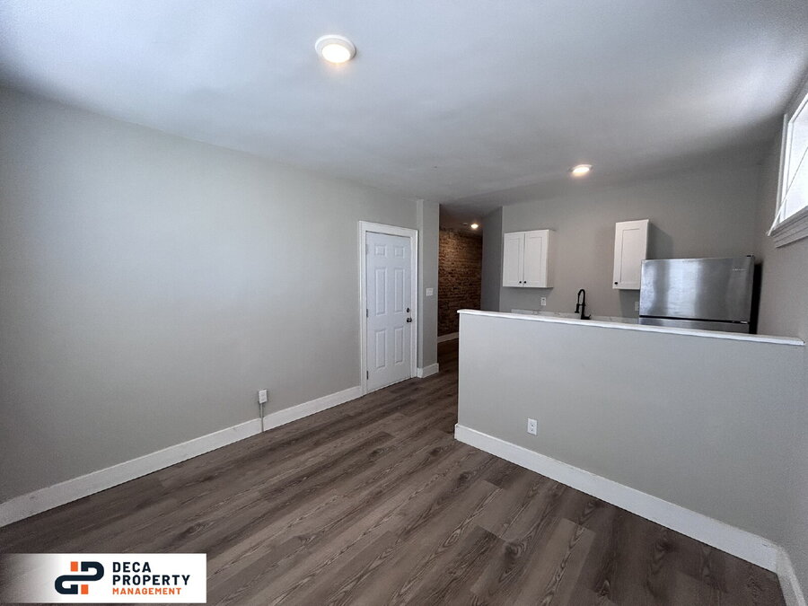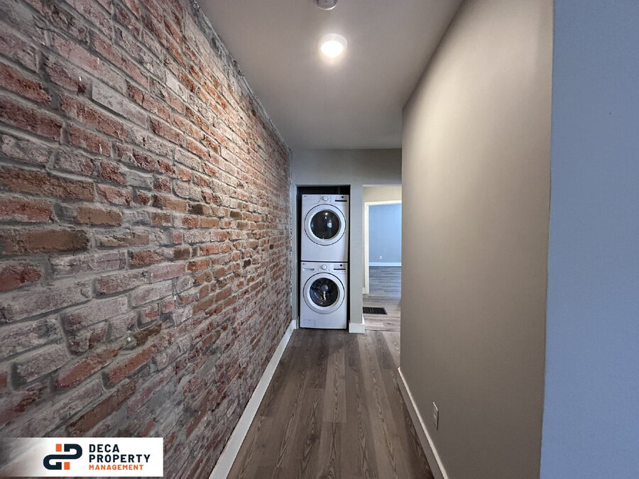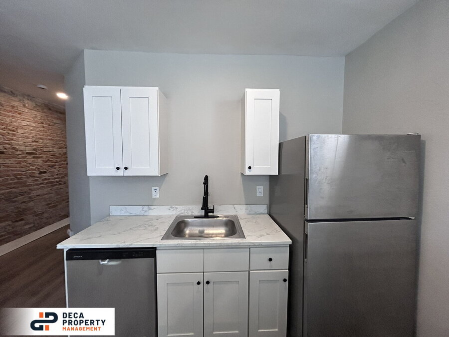 Completely renovated 2 bed, 1 bath apartment, minutes from a park and nestled on a dead-end street. Upon entry, you’ll immediately notice the high ceilings, recessed lighting, LVP flooring, and exposed brickwork that add character and style throughout. The kitchen is equipped with stainless steel appliances, including a fridge and electric stove, making meal prep both easy and efficient. Both bedrooms offer ample storage space for added convenience. Additional perks include an in-unit washer and dryer (not warranted). Don’t wait—this unit won’t last long!