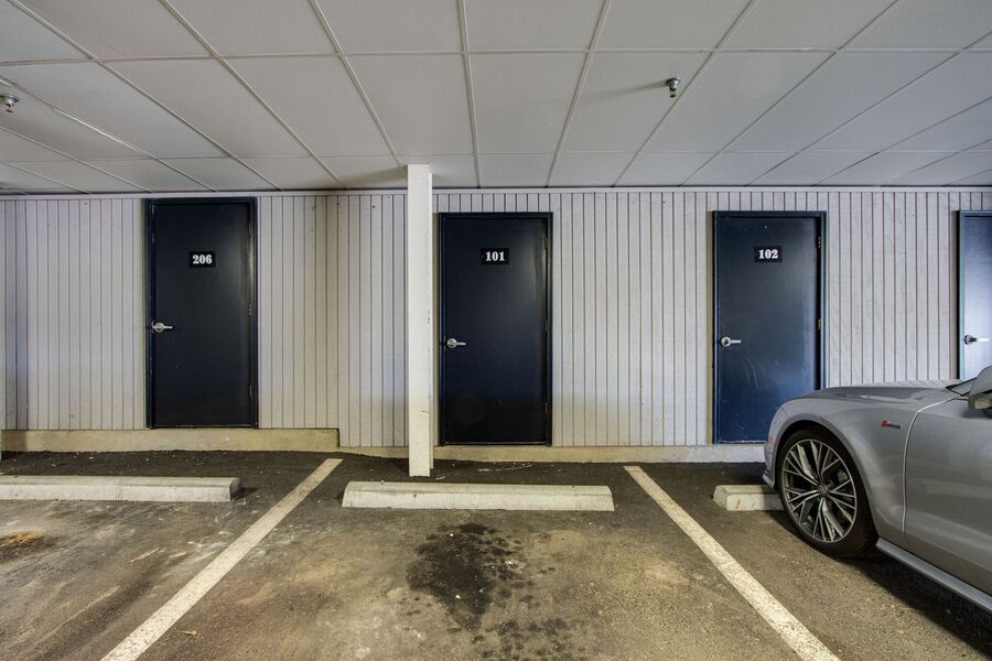 Gated parking includes one reserved space, along with a private storage room for added convenience.