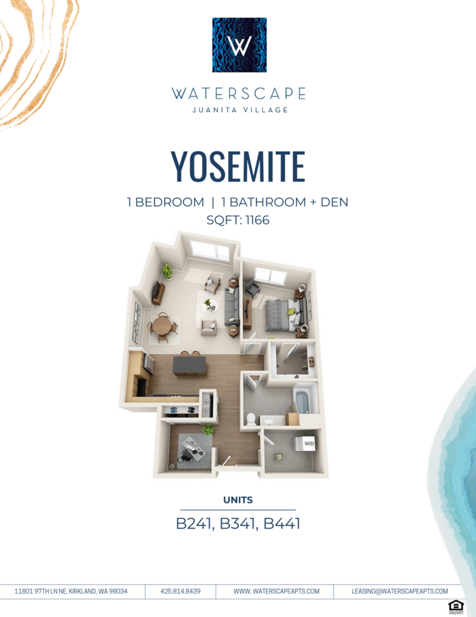 Welcome to Waterscape at Juanita Village, a vibrant lakeside community nestled in the heart of Kirkland. These thoughtfully designed apartment homes offer the perfect blend of comfort, convenience, and urban charm, with stunning views of Lake Washington. Each residence features spacious layouts, upscale finishes, and private patios or balconies- ideal for enjoying the serene surroundings. With waterfront trails, local cafés, boutique shopping, and entertainment options just blocks away, Waterscape delivers a modern living experience in one of the area’s most sought-after neighborhoods.