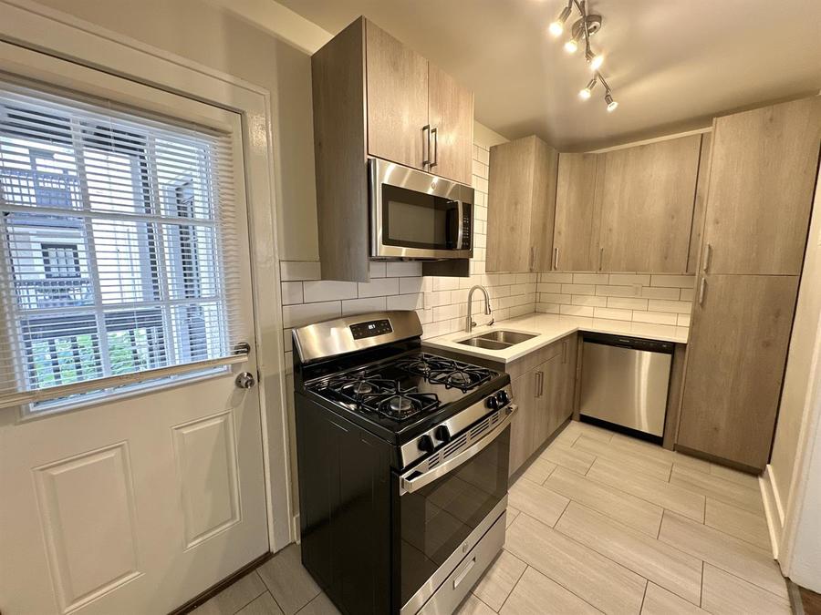 All-New Kitchen: Prepare culinary delights in style with a completely revamped kitchen, equipped with modern grey cabinetry, solid surface countertops, and top-of-the-line stainless steel appliances.