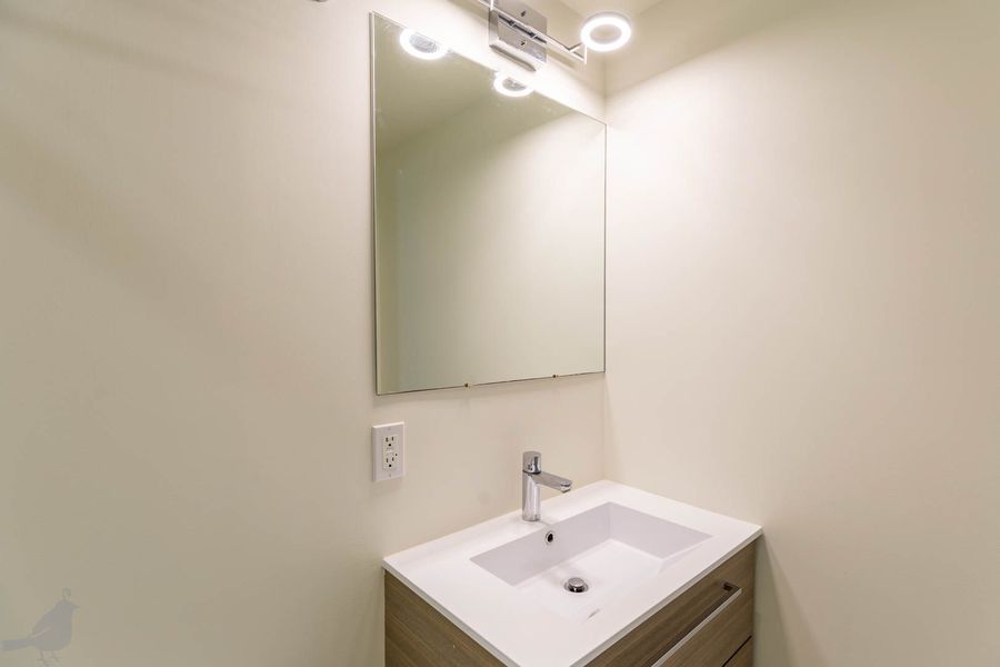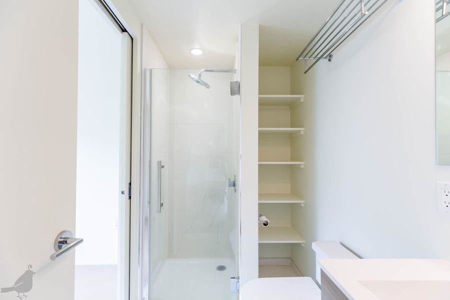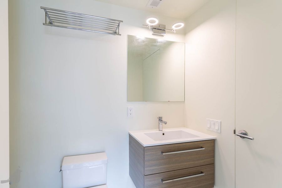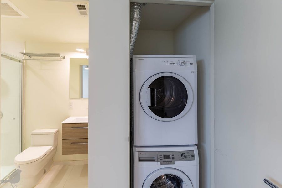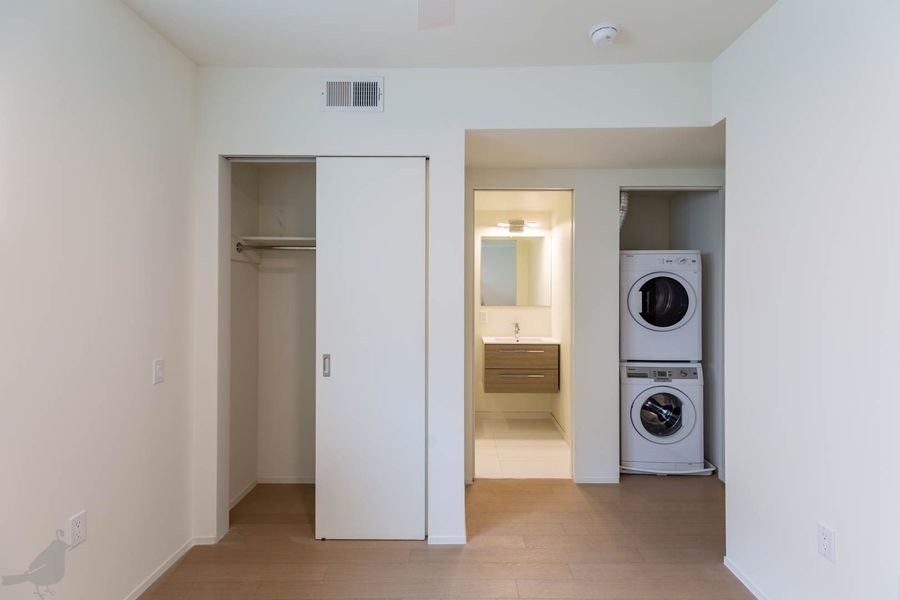 This adorable two-bedroom, two-bathroom condo at the Moda 17 features indoor/outdoor living in the heart of the city! Step into the open living and dining area, which features lovely hardwood floors and recessed lighting. The modern kitchen has a bright backsplash, stainless steel appliances, and lots of cabinet space. Both bathrooms are spa-like with floating vanities and glass-enclosed showers and there is a full-size washer and dryer. In addition, find your own reserved space on the building's rooftop deck- making this unit a true oasis in the city! Lastly, there are is one off-street parking space and one storage unit included with this lovely abode!