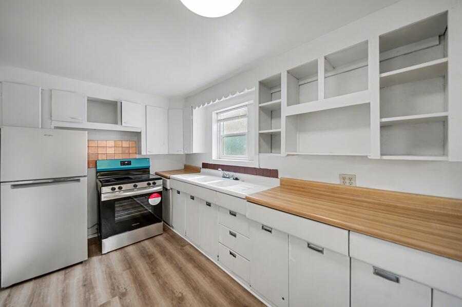 Step inside to a well lit living room flowing with natural light and updated LVP Flooring! The kitchen has been updated as well with butcher block counter tops, and a brand new stainless steel oven and refrigerator! Off the kitchen you will find a dining area and a separate laundry area! The primary suite features a large bathroom with a walk in shower. This home is located on a large fenced lot perfect for spending time outdoors!