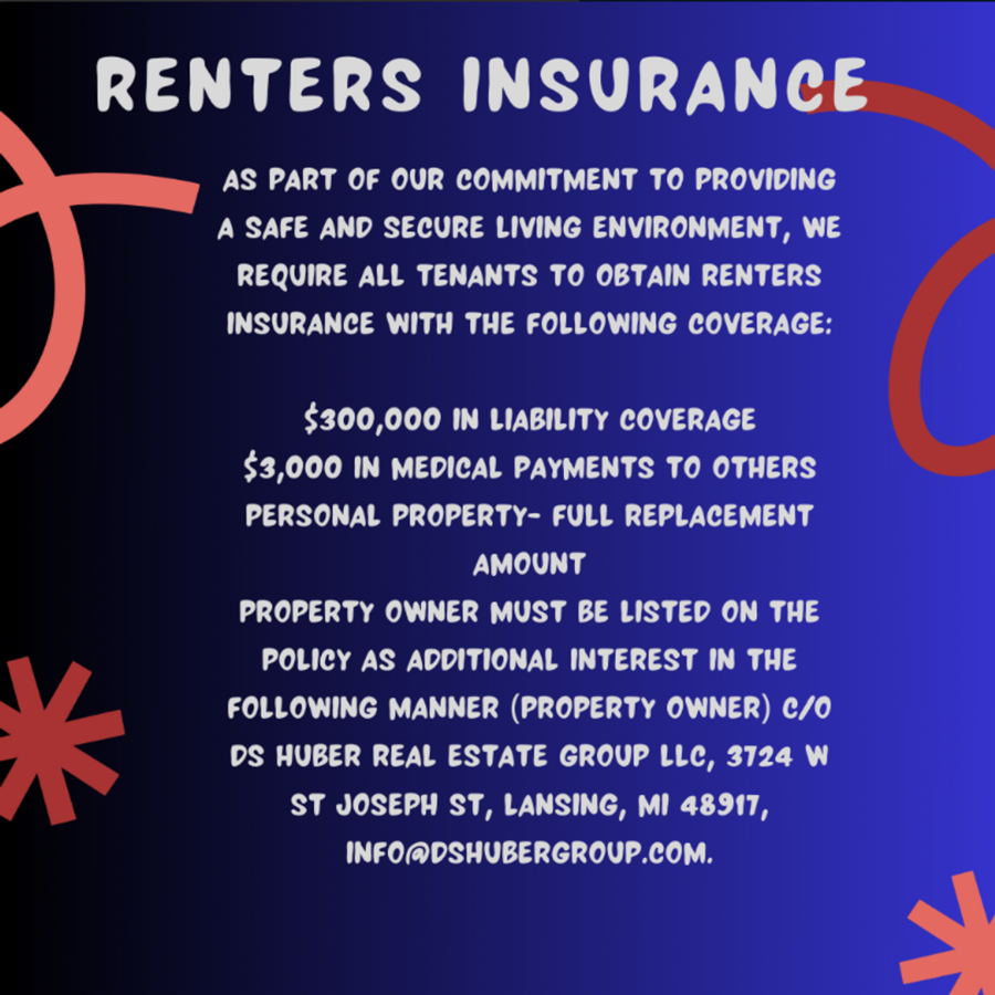 Proof of renters insurance is required prior to move-in.