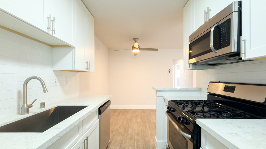 Looking for a lot of space and bang for your buck? No need to look any further, this is it! This roomy 2 bed/ 1.5 bath has been updated with a fresh lick of paint, quartz kitchen counters, newer flooring, and all the appliances you need, including a dishwasher, microwave, fridge, gas stove, and living room AC.