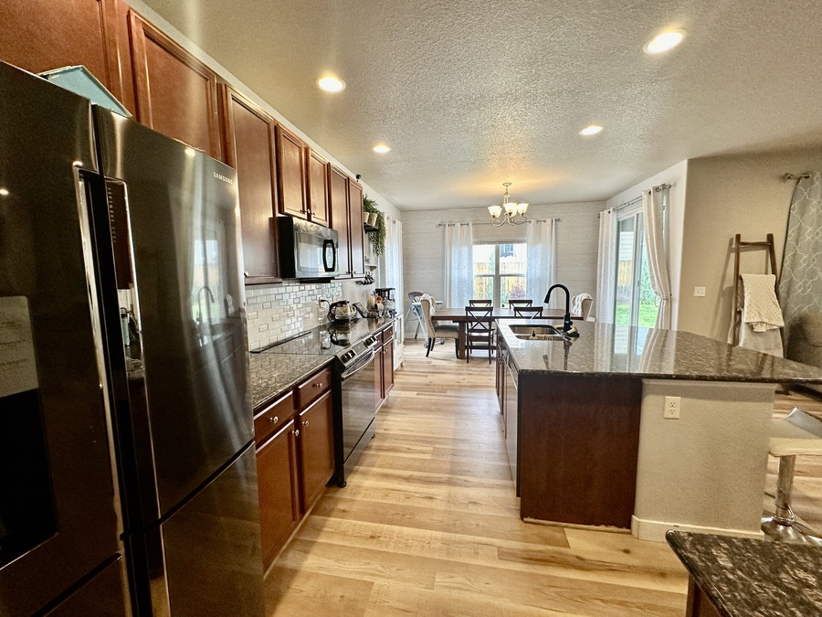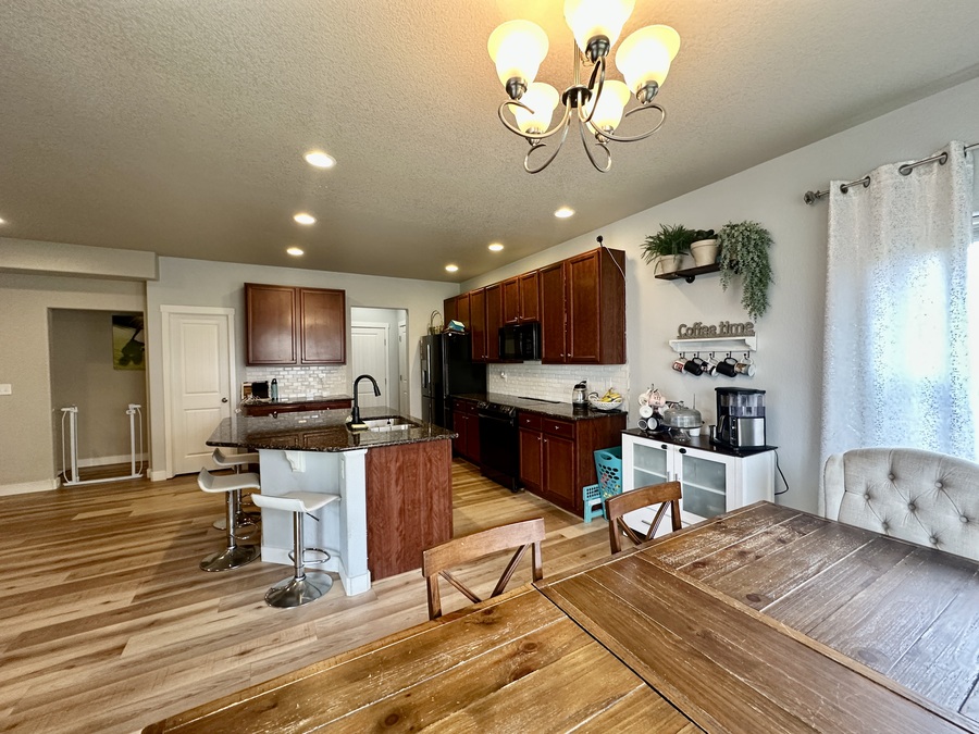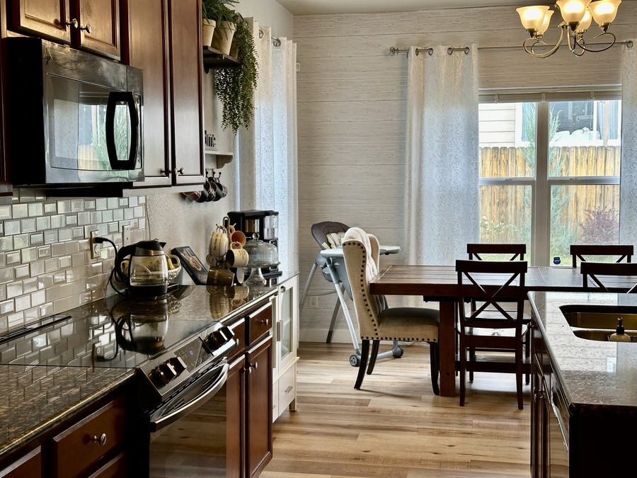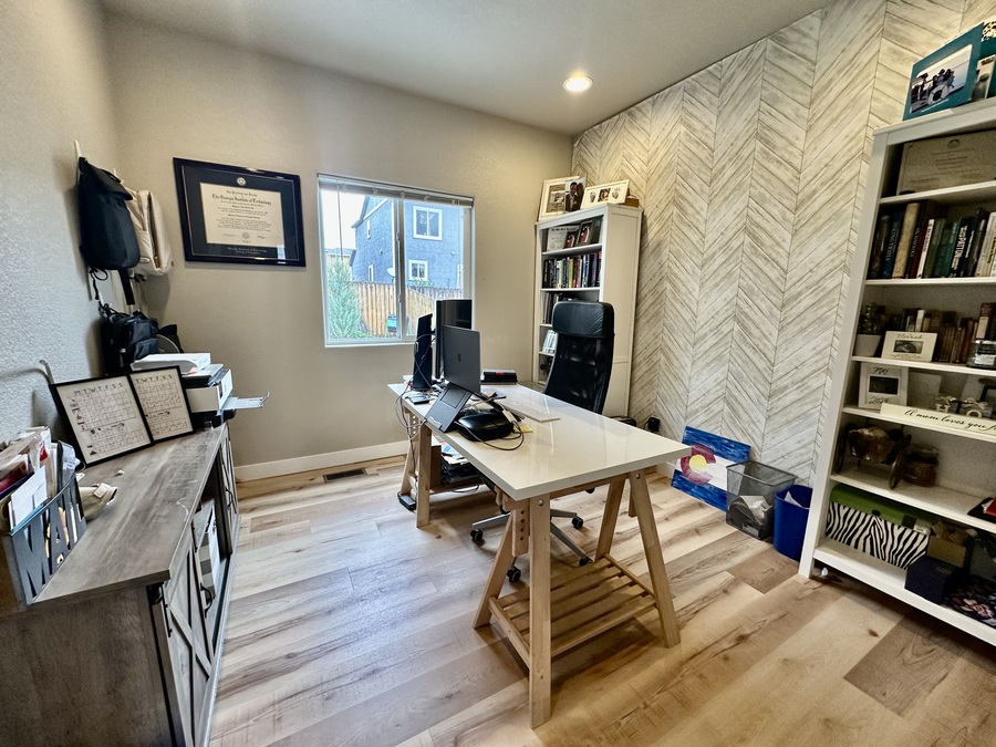 Beautiful 2story home with 5 beds, an office and a loft. Vaulted entry with wood floors throughout the main, office with french doors. The Great Room opens to a large gourmet kitchen with gas stove, granite countertops, walk in pantry, butler's pantry, 42 inch cabinets with brushed knickel hardware and a large island. The upper level has a great loft area for the kids or another office area, and four big bedrooms. The primary bedroom has an adjoining 5-piece bath and huge walk-in closet. The basement offers a large family room, an extra bedroom and a full bath. Enjoy the covered patio in your fenced backyard. 3 car garage! Close to schools, parks, shopping, entertainment and quick hop onto the Powers corridor to get to any base!