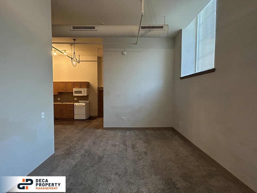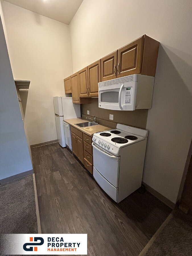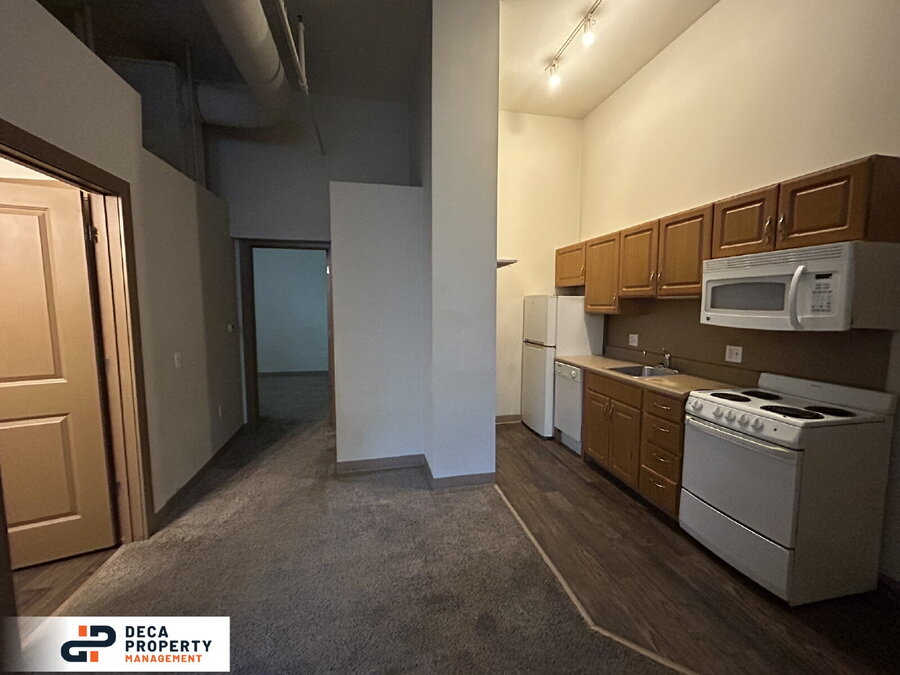 Step into this unique and inviting 1-bedroom, 1-bath apartment featuring soaring high ceilings and timeless character. Located in a beautifully restored historic school building, this home blends classic architecture with modern comfort. Enjoy a bright and spacious living room with plush carpeting, a ceiling fan, and plenty of natural light. The kitchen offers durable LVP flooring and comes equipped with a refrigerator, dishwasher, oven, and microwave—everything you need for easy everyday living. The bedroom continues the cozy feel with soft carpeting, a roomy closet, and a stylish custom light fixture. Added conveniences include additional storage space and coin-operated laundry facilities conveniently located on the first floor. Don’t miss this opportunity to live in a one-of-a-kind community with historic charm and modern comfort. Schedule a showing today and make this beautiful apartment yours!