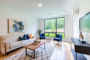 Additional amenities include high ceilings, coat closet in main living area, washer/dryer unit location varies per unit, window shades, unites highly insulated for noise and thermal efficiency, state of the art ventilation system, storage unit, 1 covered assigned parking space, elevators, on-site mail room/box, keyless code entry to building & unit, bicycle storage, exercise room, common lounge area, and access to rooftop lounge area.