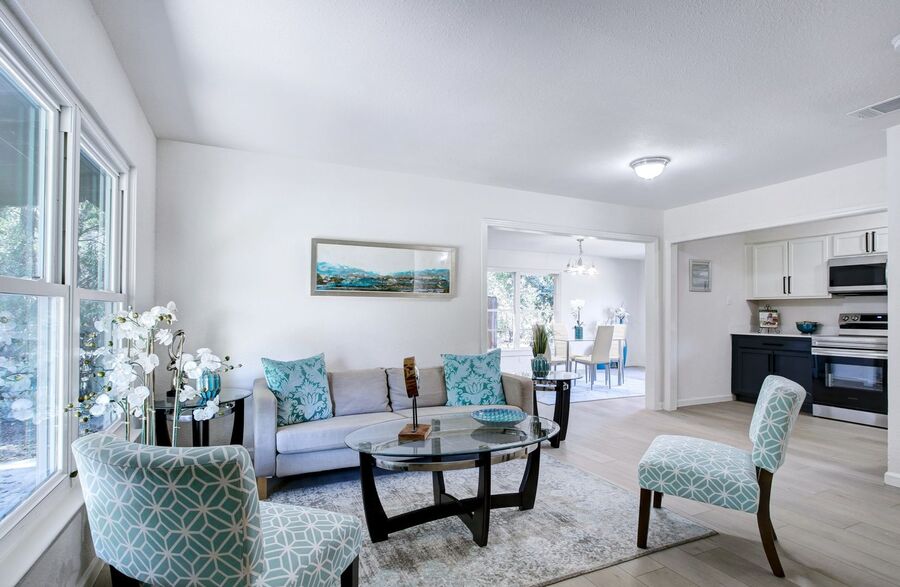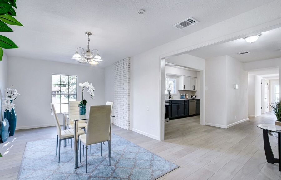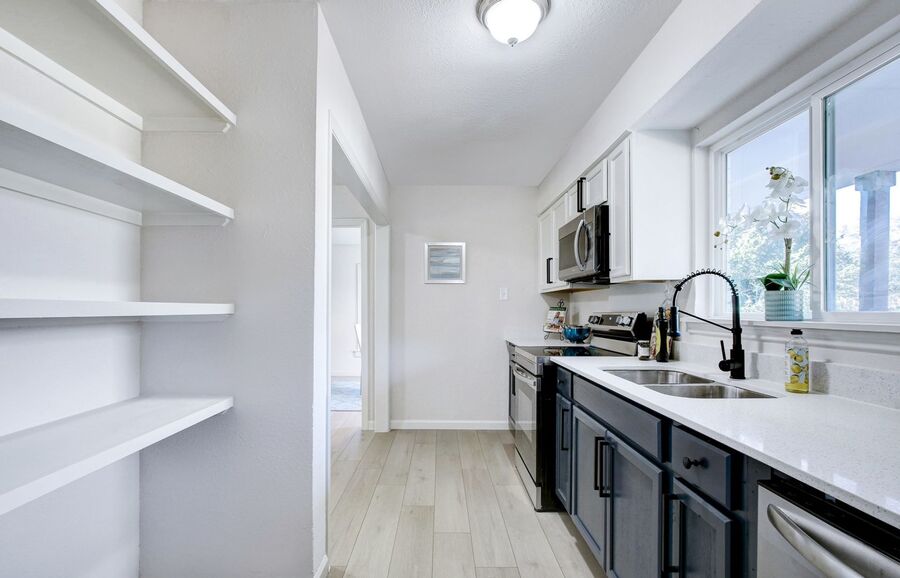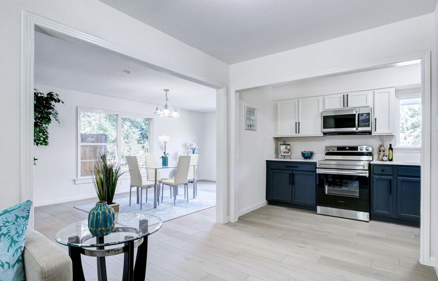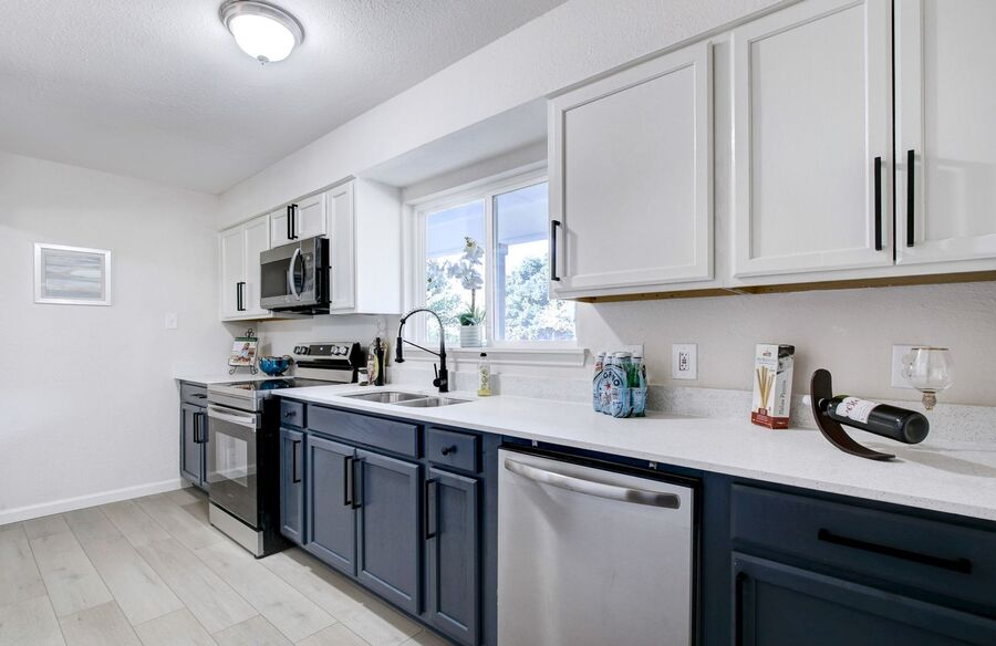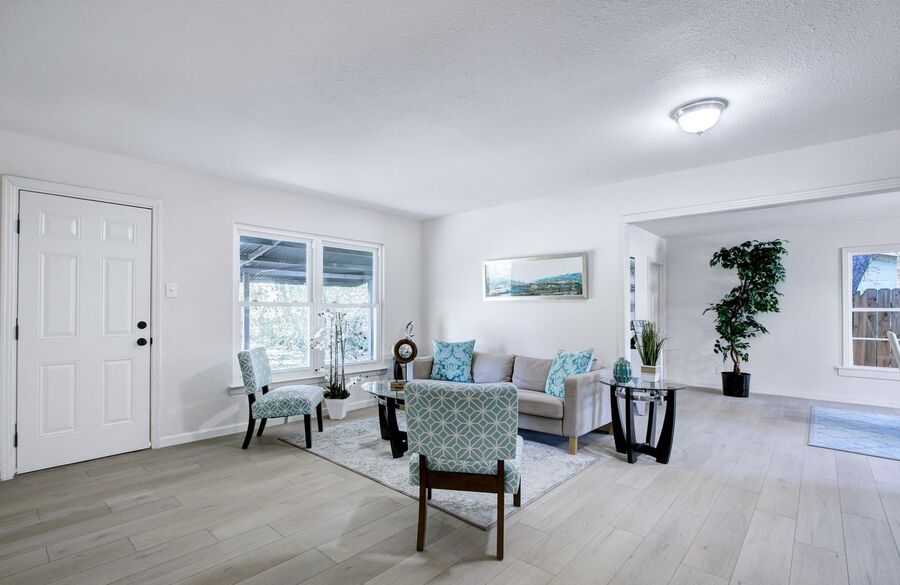This inviting 3-bedroom, 2-bath property features a spacious and functional layout with generous living, dining, and kitchen areas. The modern kitchen showcases warm neutral tones accented by a stylish splash of blue on the cabinets, ample base and wall storage, and a large pantry conveniently located next to the refrigerator. The home features beautiful flooring throughout and a large yard with a shed for addition storage. Thoughtfully updated with quality finishes, this home is full of character and ready for move-in!