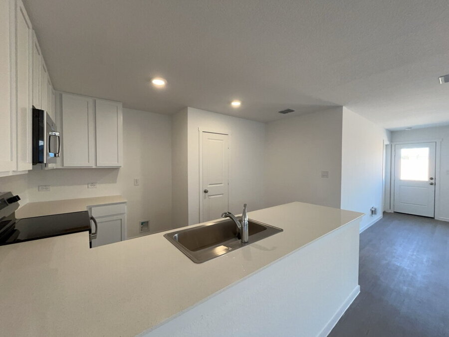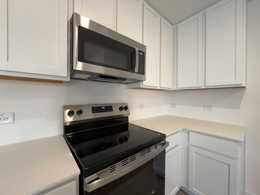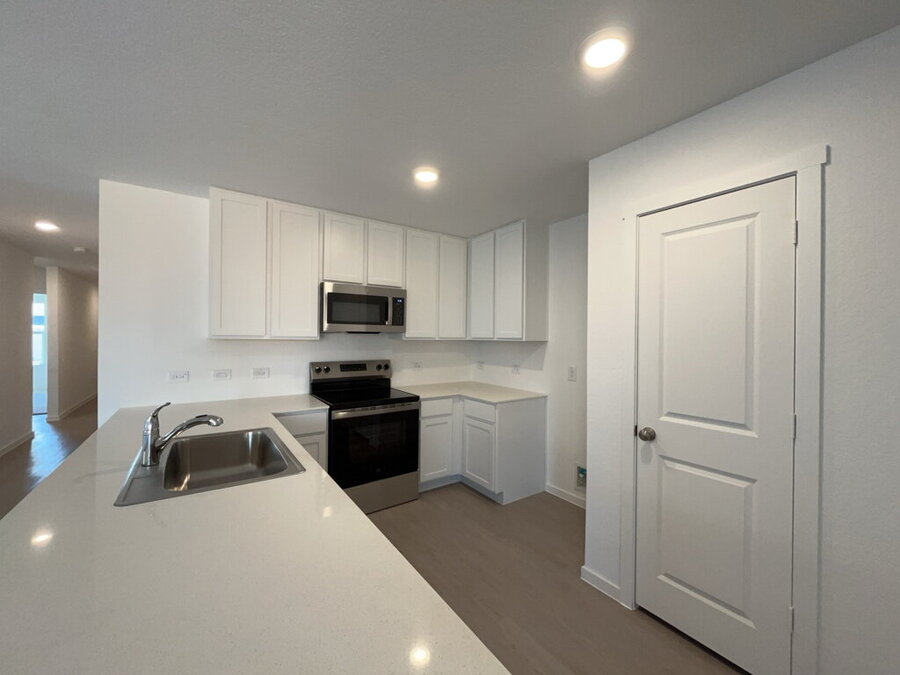 The kitchen is designed with functionality in mind, featuring solid countertops, a breakfast bar, electric stove, microwave, dishwasher and a spacious pantry perfect for everyday use and casual meals.