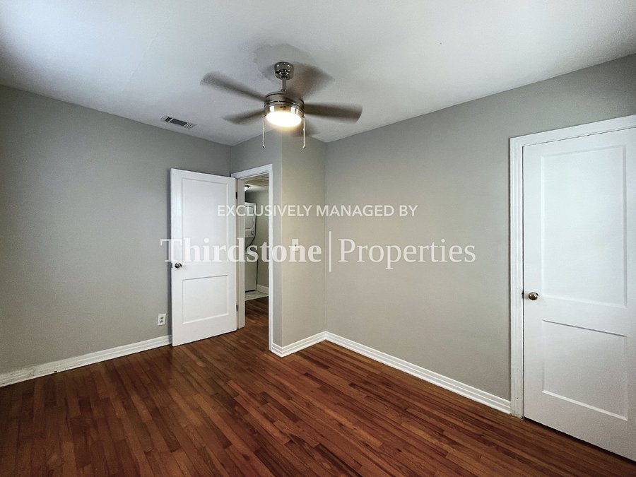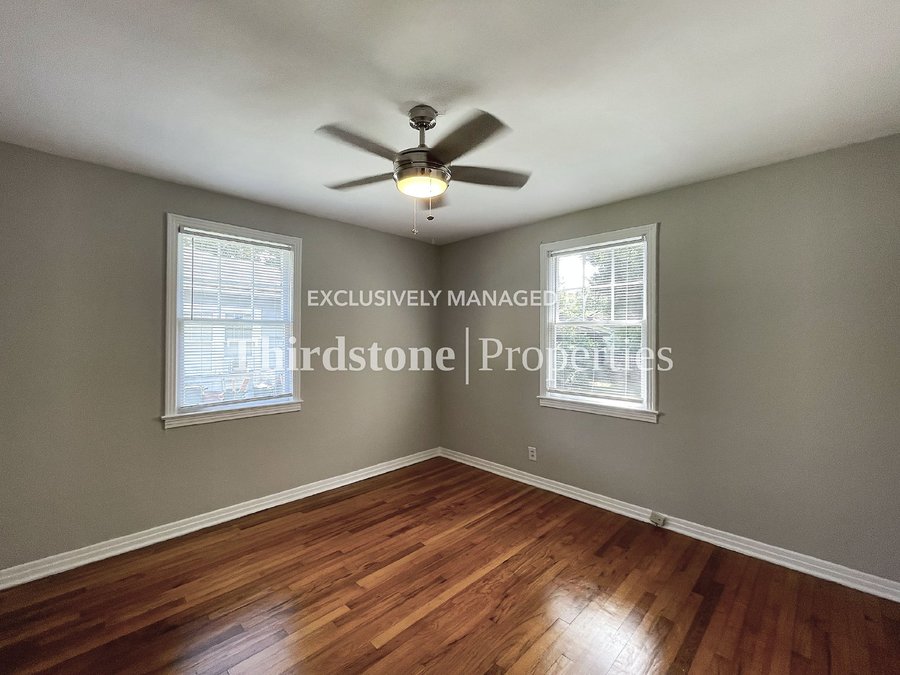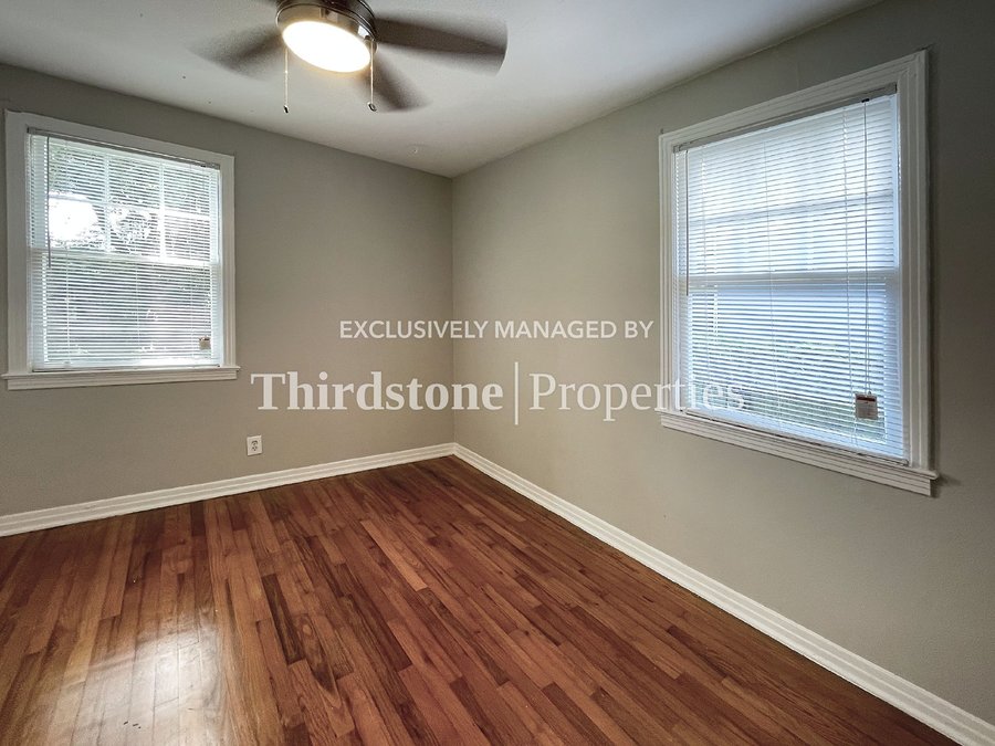 This delightful 2 bedroom, 1 bath haven offers a cozy yet modern atmosphere, perfect for anyone looking to make a space their own. Past the charming front porch with a comforting ceiling fan, step inside to discover original hardwood floors and a thoughtfully designed open floor plan that seamlessly connects the living room to the kitchen. The newly updated kitchen includes sleek cabinetry, elegant light fixtures, stylish countertops with bar seating, and stainless steel appliances, including an over-the-range microwave. Large windows allow abundant natural light to fill the home, while blinds provide privacy and light control. Freshly painted walls throughout create a clean, modern feel. Each bedroom includes a closet offering ample storage and a ceiling fan to help circulate the cool air provided by the new central air conditioning system. The full bathroom features newly updated fixtures and easy-to-clean subway tile surrounding the shower. For added convenience, a washer and dryer is included. The driveway provides two off-street parking spaces. Outside, a plant bed has been added to the back deck for increased privacy. Residents are responsible for all utilities, lawn care, and are required to maintain active renter’s insurance throughout the lease term. Pets are welcome, breed and weight restrictions may apply. Application fee $55 per person 18 and over. Lease Term: 12 months.