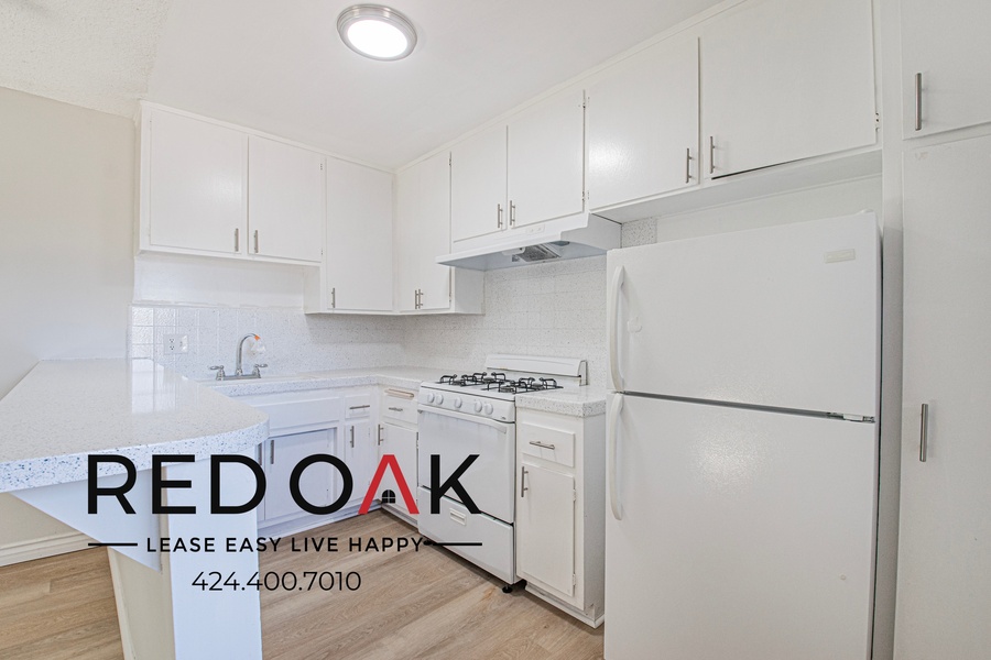 ~ Modern Kitchen: Hardwood cabinets, quartz counters, and included appliances.