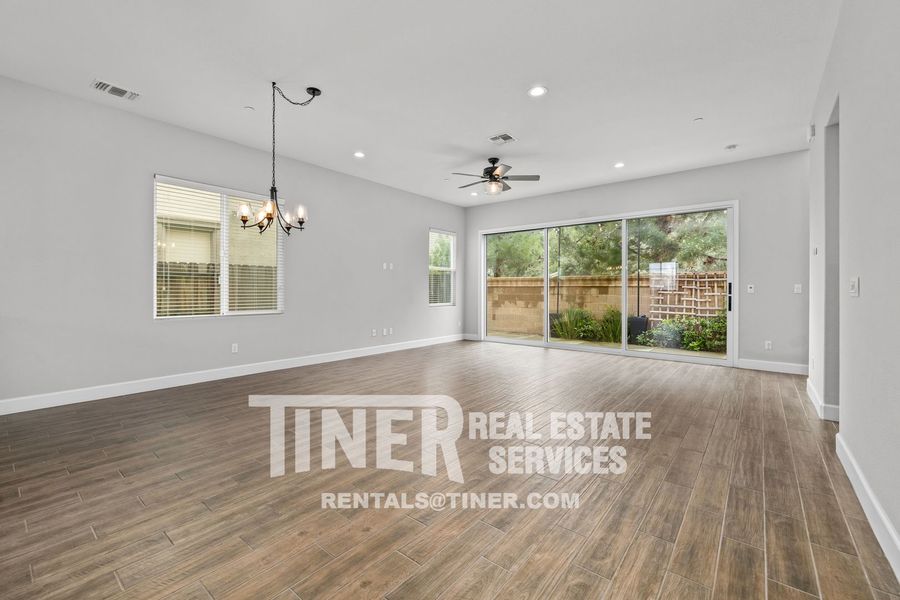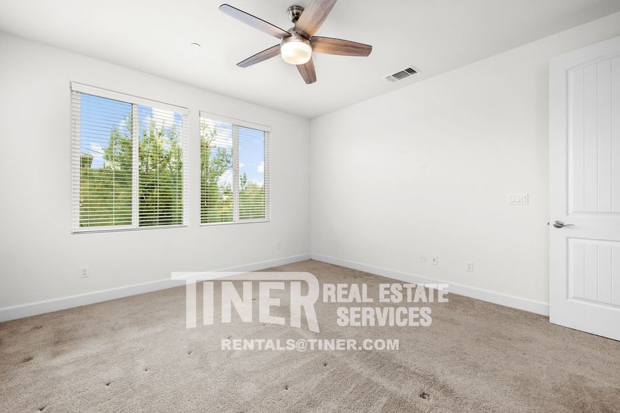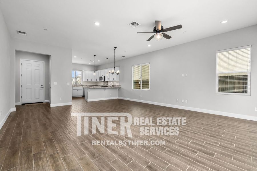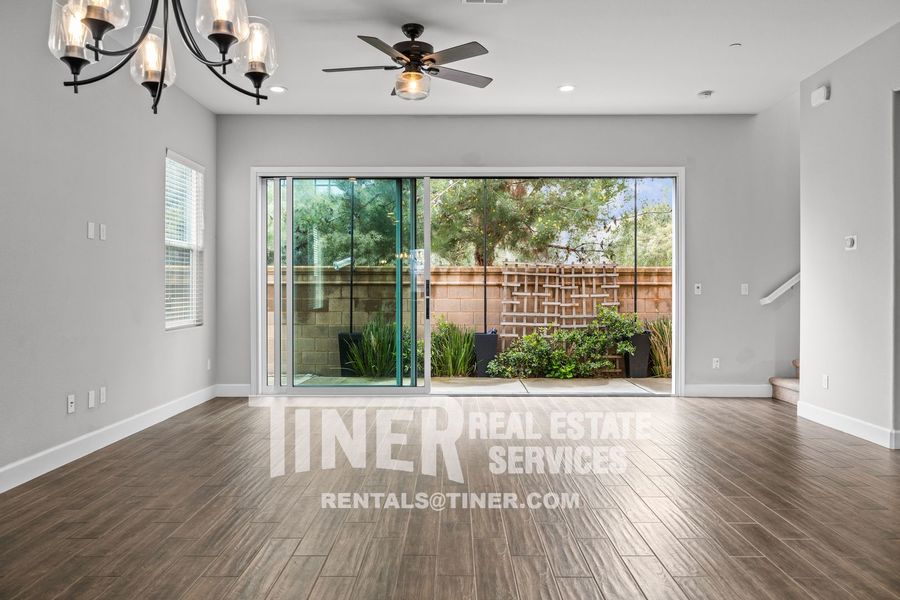 Welcome to this beautiful home with great amenities and smart floorplan. The entry opens to a spacious great room common area with a massive slider to the back patio that pours sunlight into the living room. The bright and airy kitchen features stainless steel appliances, lots of cabinetry, a farmhouse sink, and a dining bar. 1/2 bath downstairs. Stairs lead to sleeping quarters, laundry room, and common area loft. The primary suite features a walk-in closet and private bath with dual sinks and a large walk-in shower. 2 additional bedrooms and a hall bath with dual sinks. Custom fixtures, countertops, and blinds throughout. Tankless water heater. Close to great schools, shopping, and freeway access.