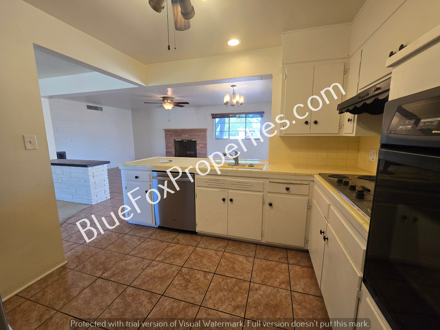 Welcome to your new home! This is a ranch style, 3 bedroom, 2 bathroom home with two living spaces. A cozy fireplace located in the family room with an attached dining area. Quaint breakfast bar, appliances are included and a full bathroom off the family room. Backyard has a storage shed for tenant use, a large covered patio with two ceiling fan/lights, built in grill and tons of space! Laundry room located outside includes a full-size washer and dryer. Come see this home today!