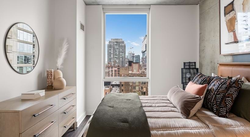 NEW LUXURY BUILDING IN THE HEART OF RIVER NORTH APARTMENT features hardwood floors throughout, quartz countertops, modern kitchens with integrated cabinet-faced appliances (oven, dishwasher, fridge, microwave, oven, range), floor to ceiling glass windows, exposed concrete ceilings, nest thermostats, central air conditioning and heat and washer dryer in unit. BUILDING includes large exercise facility, pet friendly (cats and dogs allowed) outdoor dog runs and two dog washing stations, outdoor terrace and sundeck with pool, lounge chairs, cabanas, BBQ cooking stations and fire pits, terrace lounge with kitchenette, game tables, and fireplace, rooftop lounge with chef’s kitchen,and outdoor deck with city views, and seating, parking garage and bike storage. Elevator in building and 24 hour door person. LOCATION in the heart of River North nightlife, bars, restaurants. Easy access to 90 and 94. Walking distance to the brown, purple, and red lines. **Pricing and availability subject to change. Pictures may be of another unit in the building but reflect the same finishes for all units. Don’t hesitate to reach out for floorplans and more information**